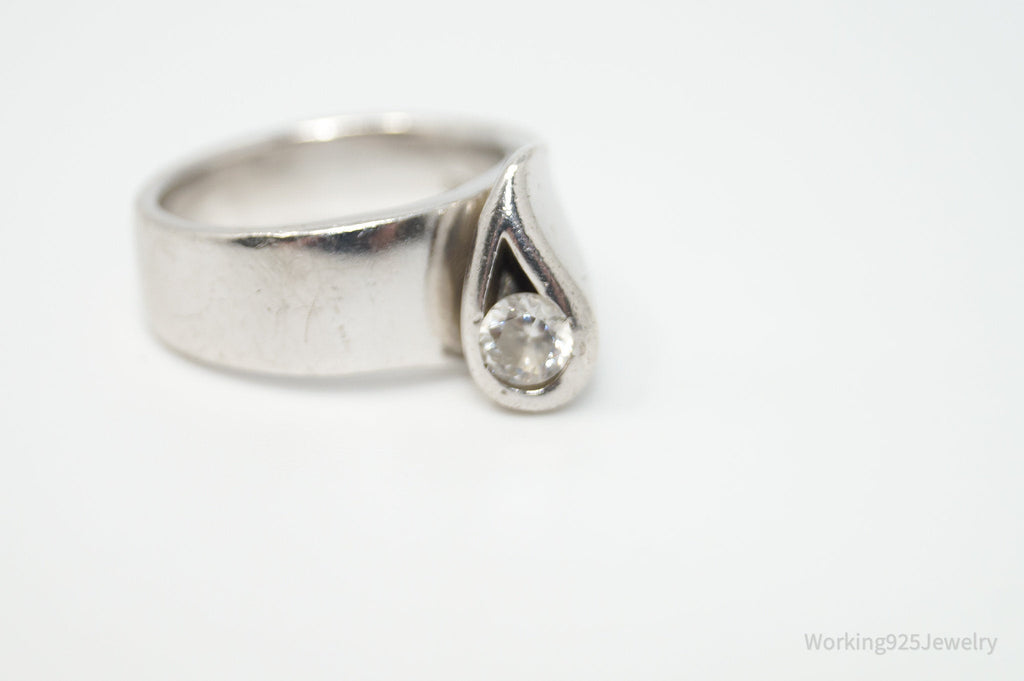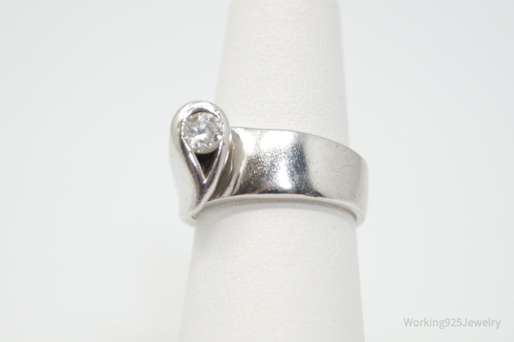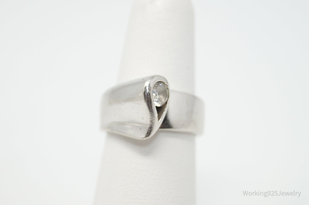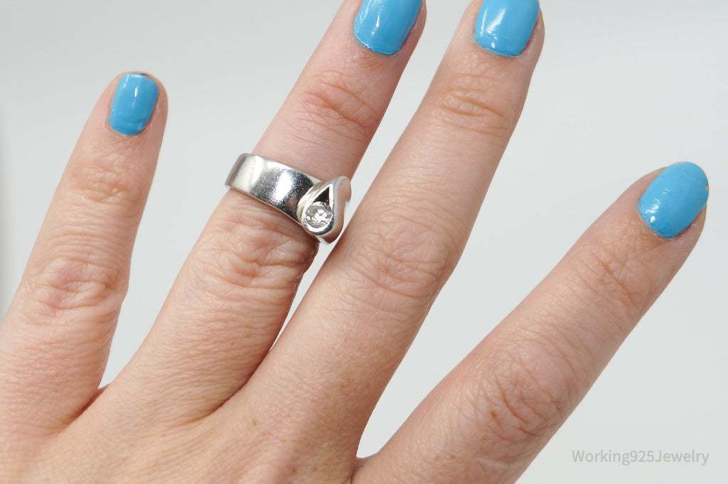 Vintage Art Deco Style Cubic Zirconia Sterling Silver Ring Sz 5.25
