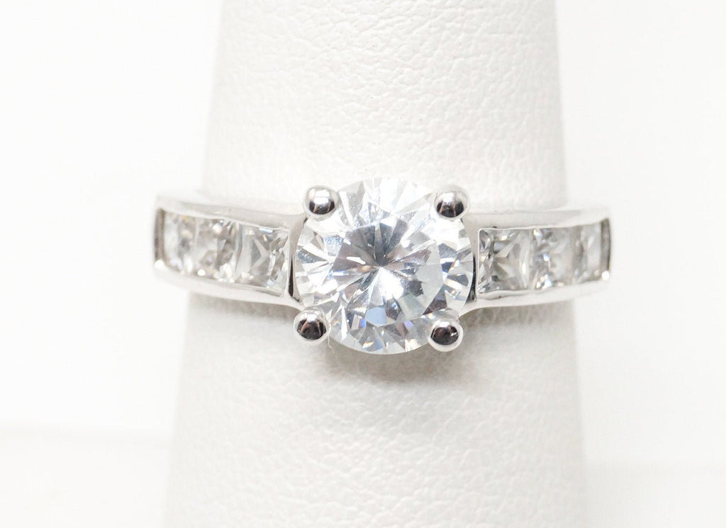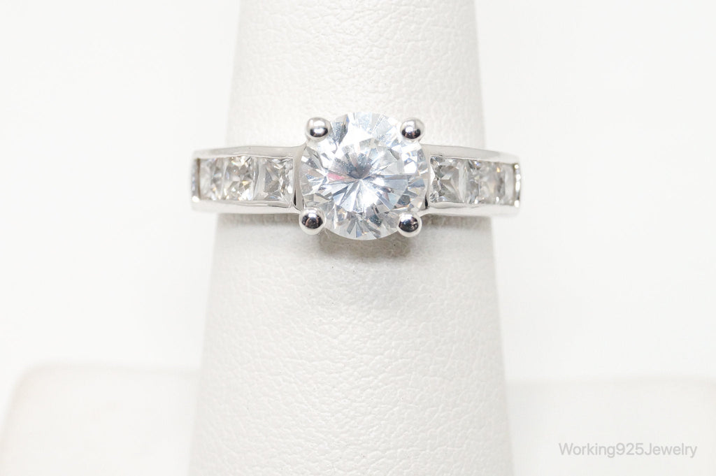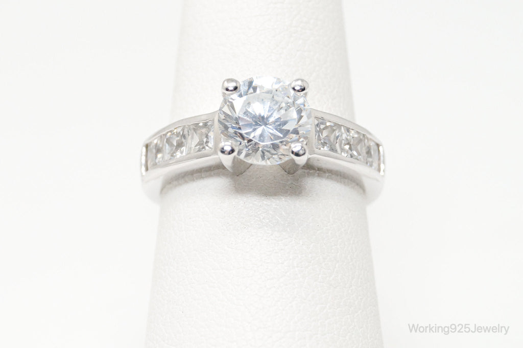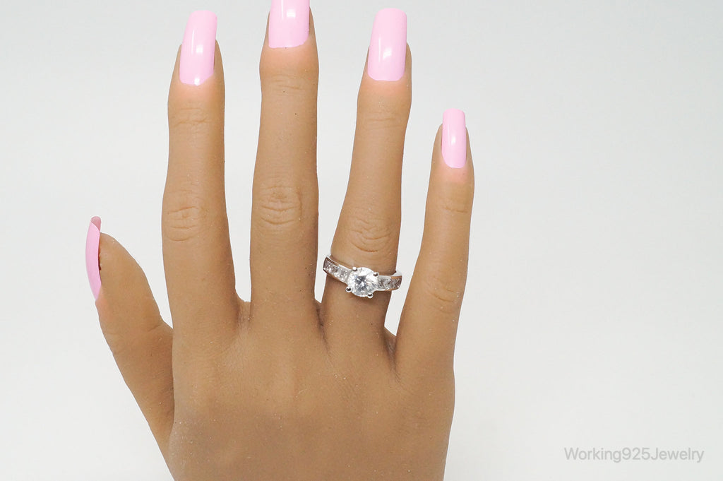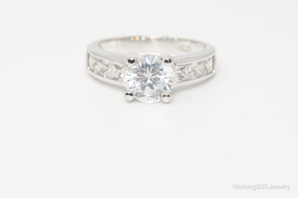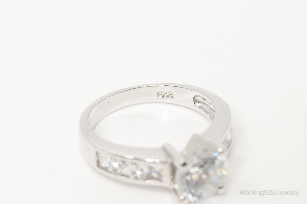 Vintage Art Deco Style Cubic Zirconia Sterling Silver Ring - Sz 6.75