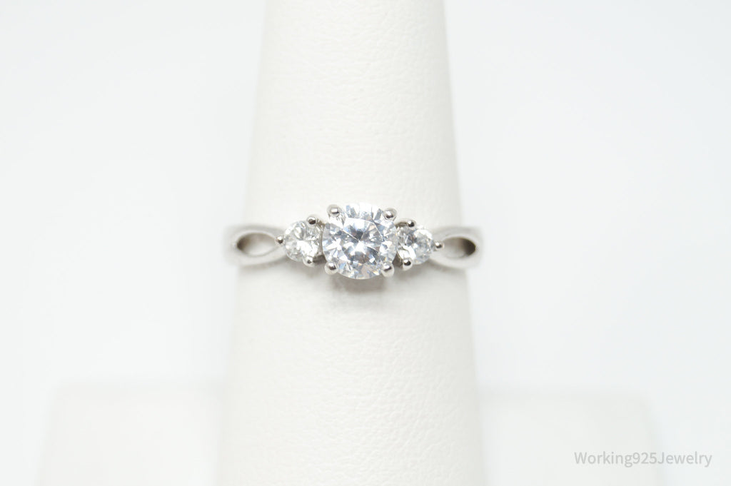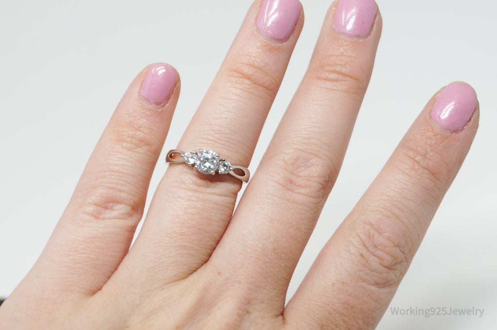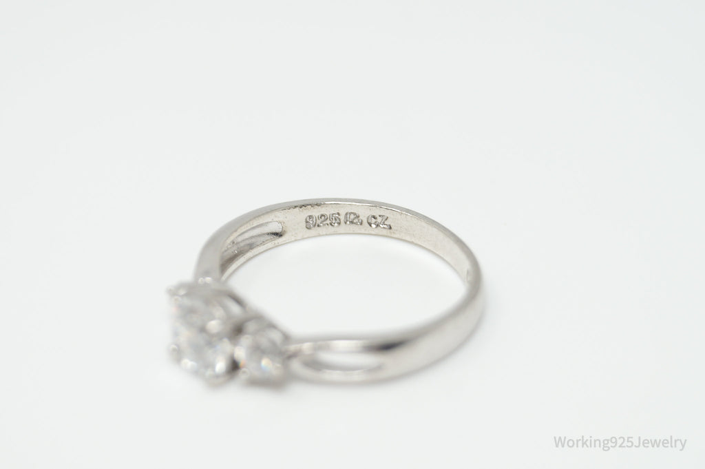 Vintage Art Deco Style Cubic Zirconia Sterling Silver Ring Sz 7