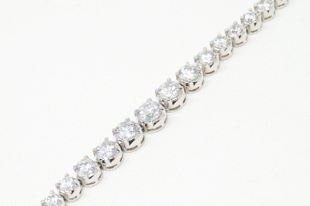 Vintage Art Deco Style Cubic Zirconia Sterling Silver Tennis Bracelet