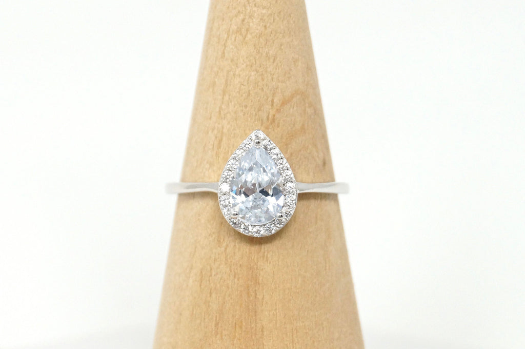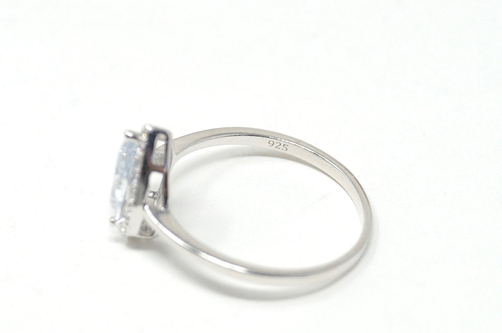 Vintage Art Deco Style CZ Large Statement Sweetheart Ring Sterling Silver Sz 9