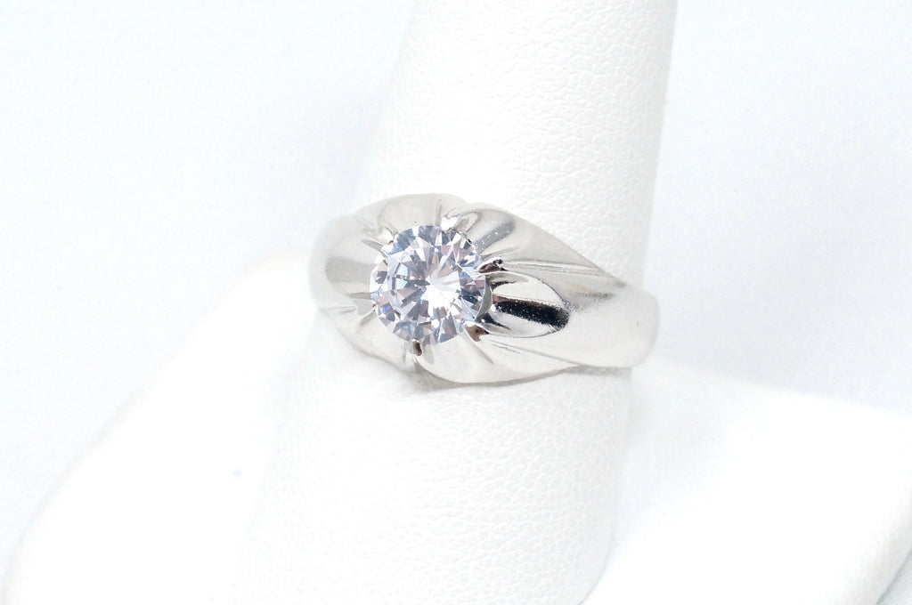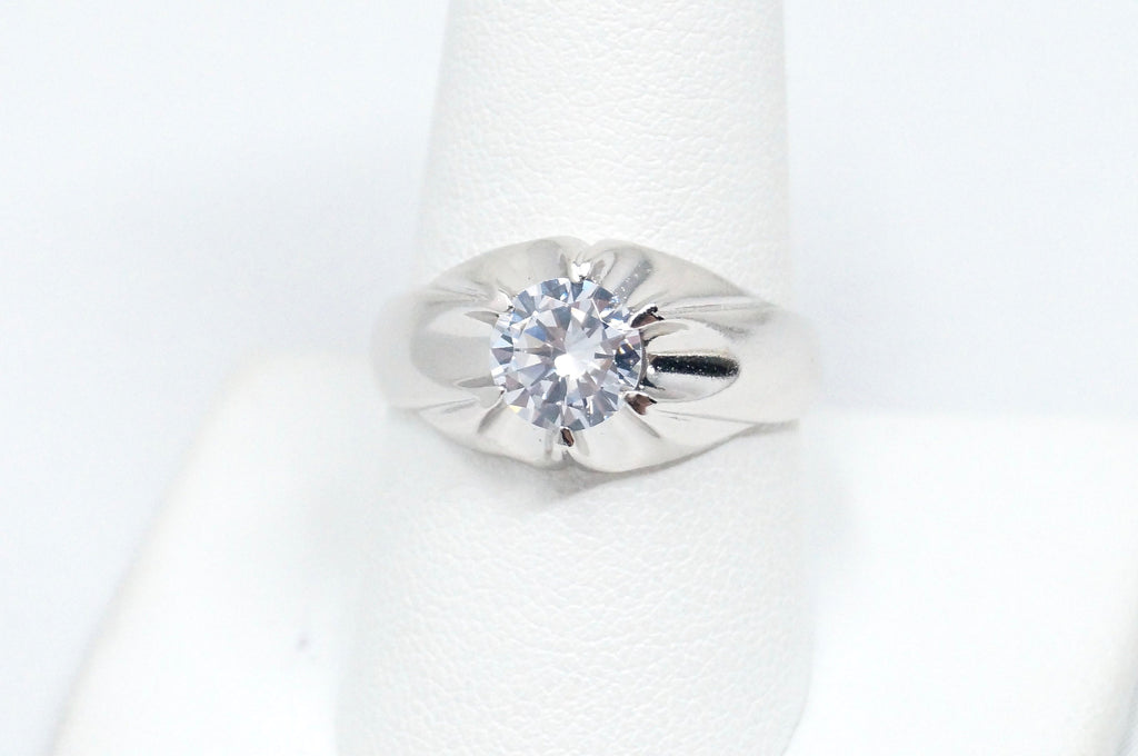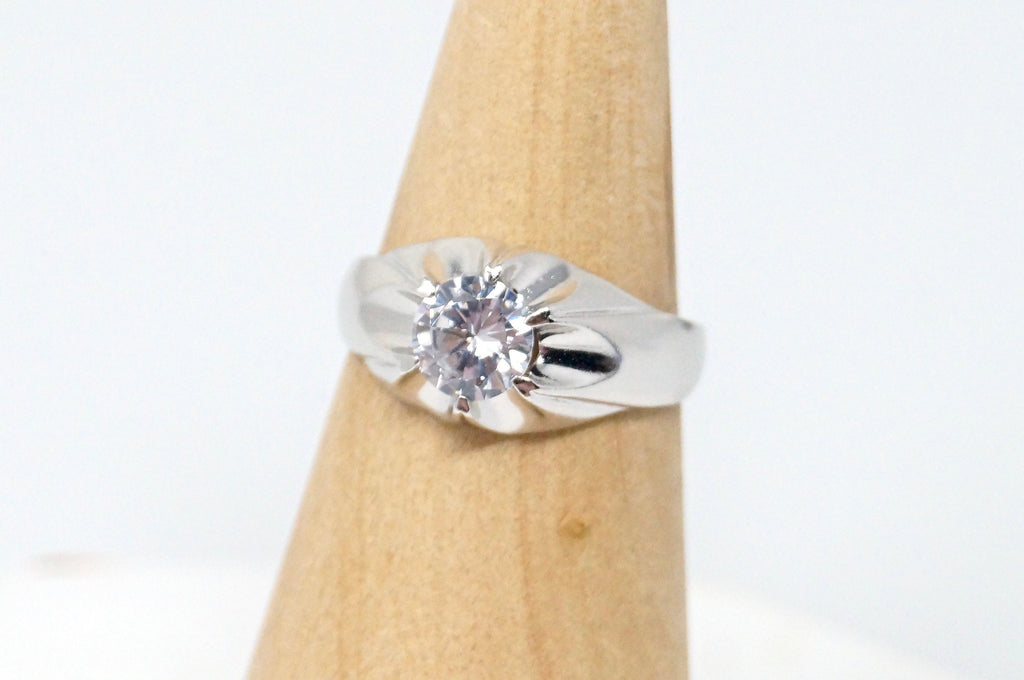 Vintage Art Deco Style CZ Statement Ring Sterling Silver - Size 9.5