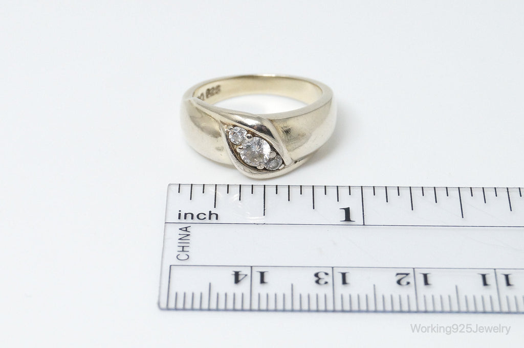 Vintage Art Deco Style Diamonique Cubic Zirconia Sterling Silver Ring Size 7