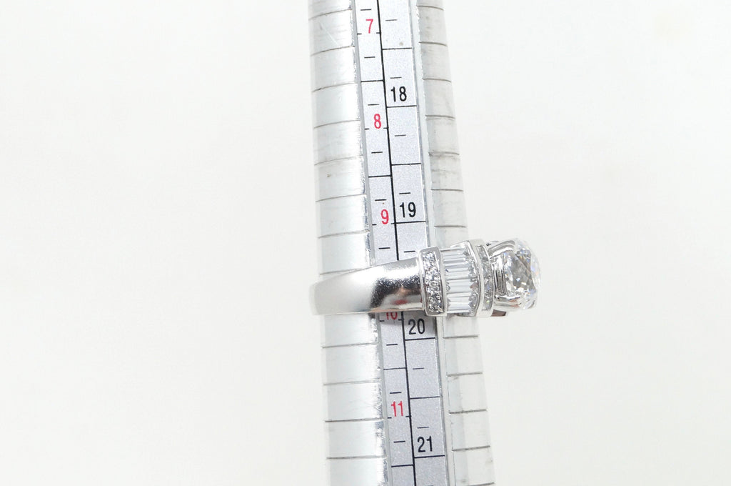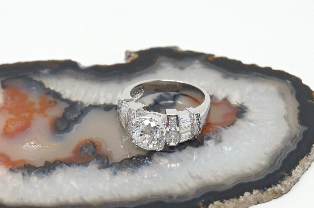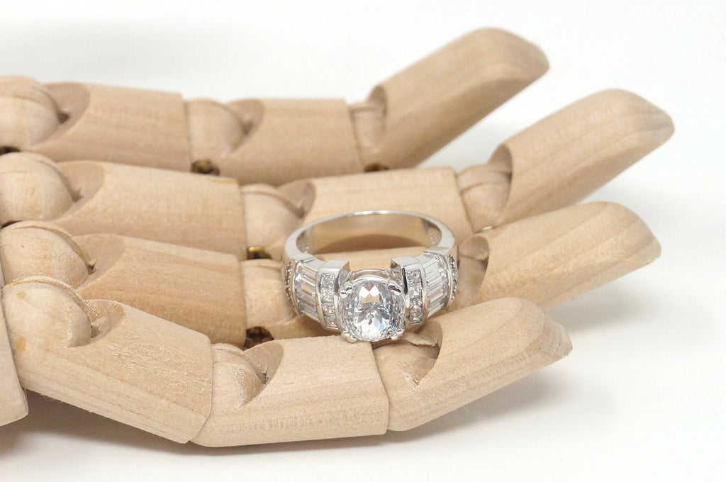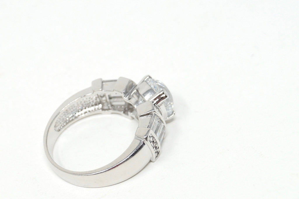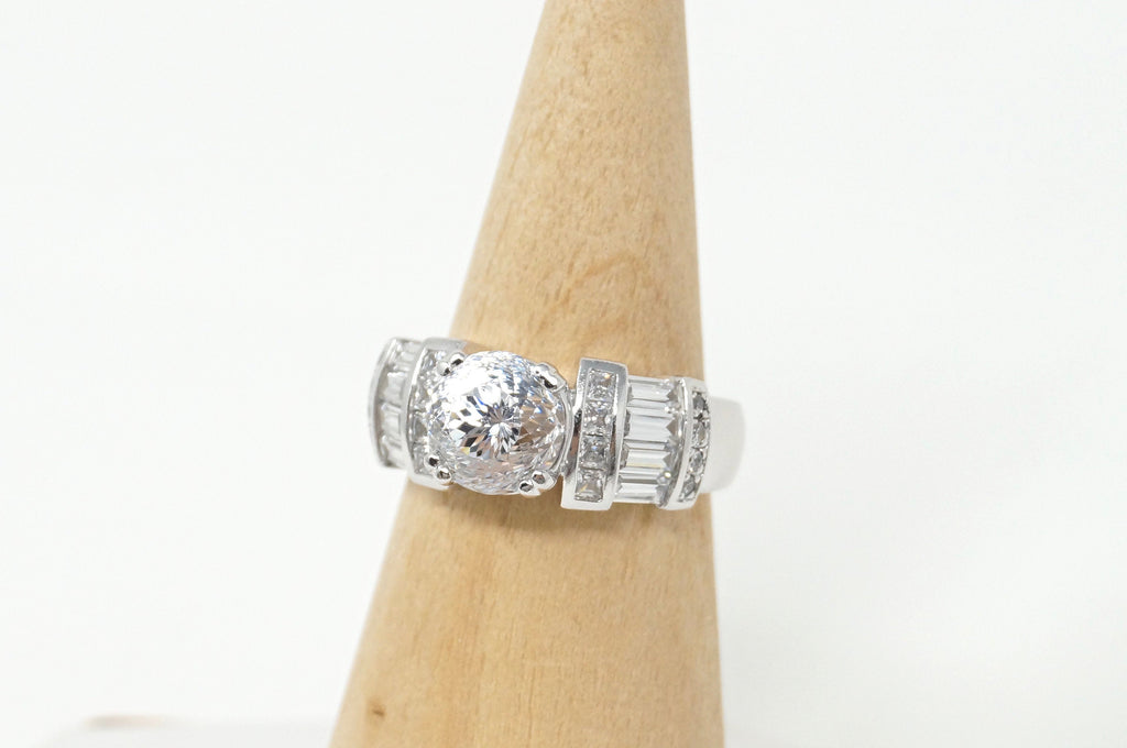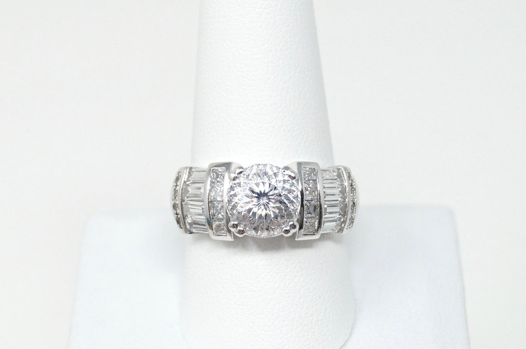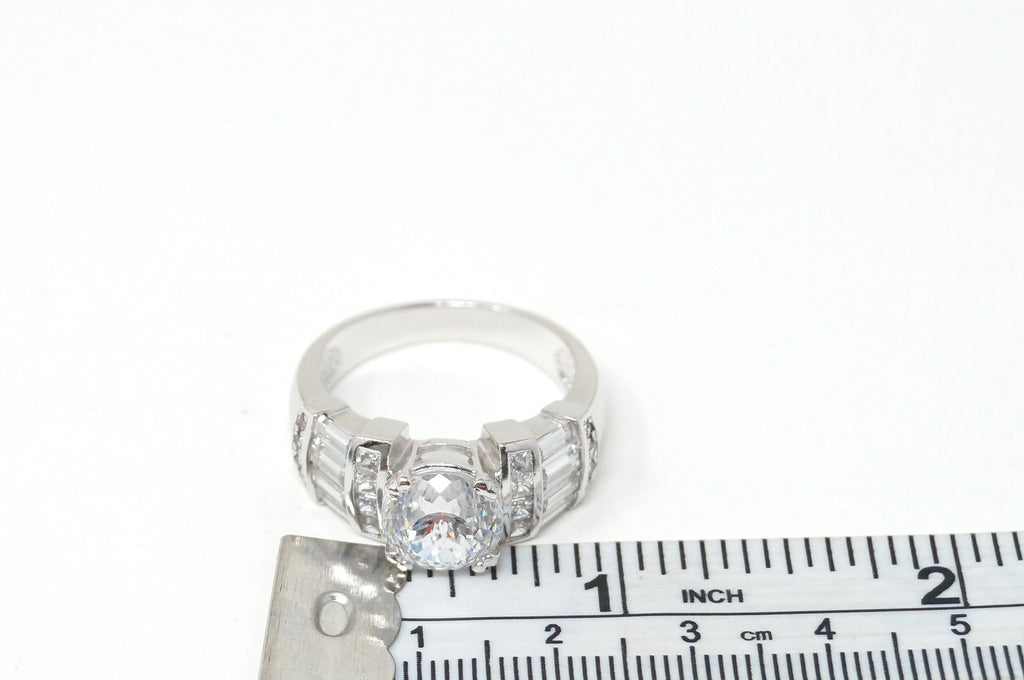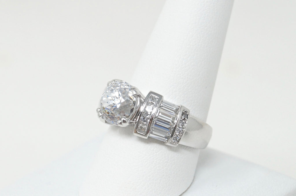 Vintage Art Deco Style Large Cubic Zirconia CZ Sterling Silver Ring - Size 10