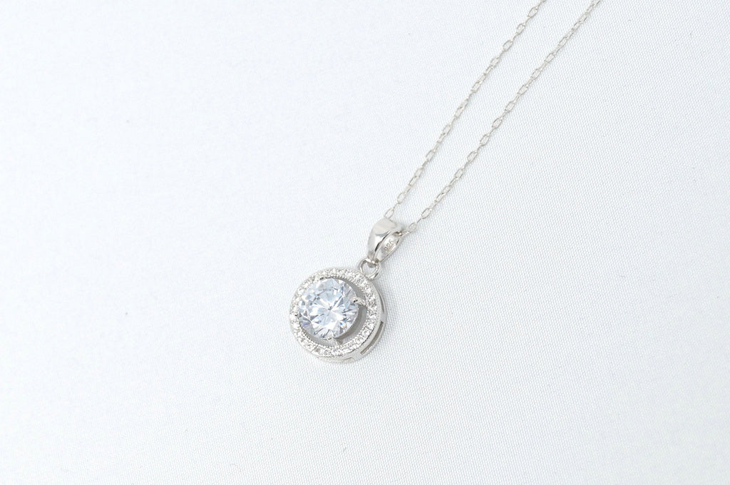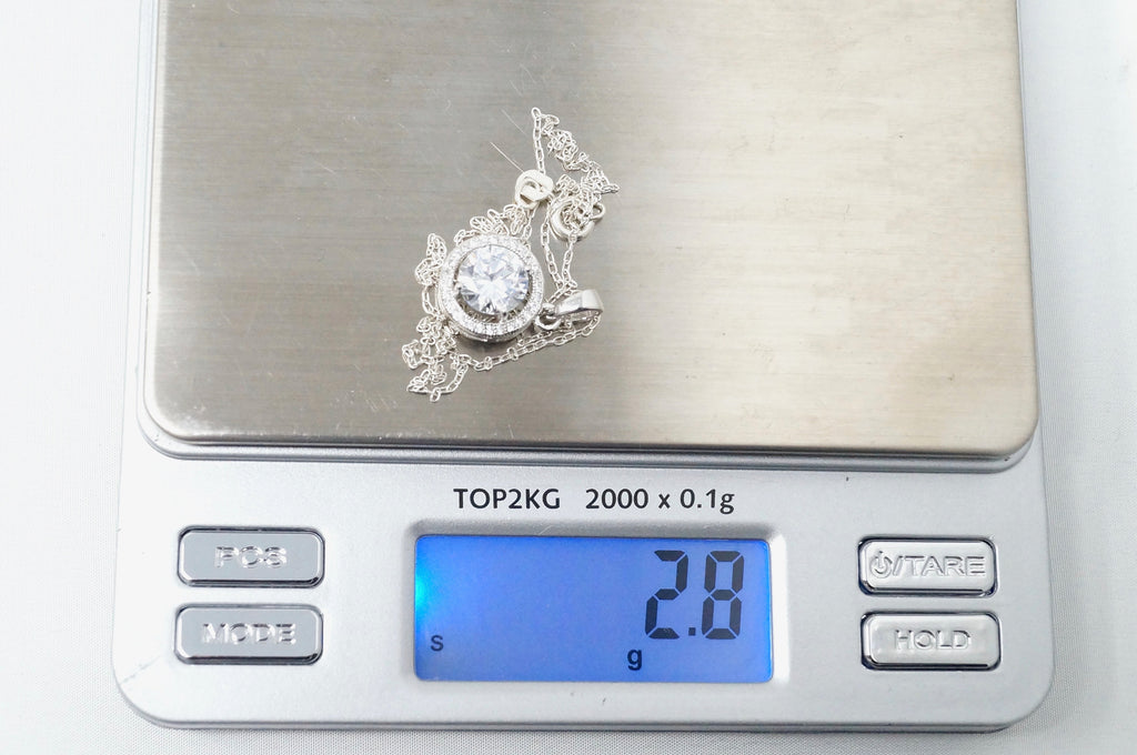 Vintage Art Deco Style Large Simulated Diamond Sterling Silver Necklace 18"