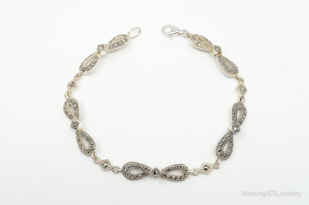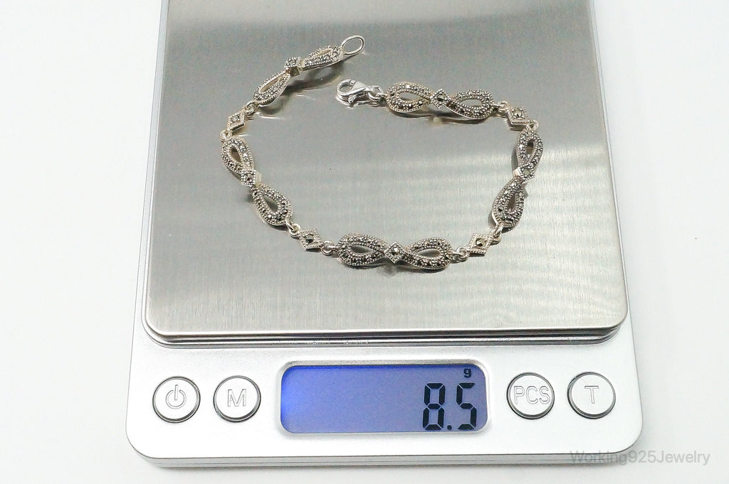 Vintage Art Deco Style Marcasite Infinity Sterling Silver Tennis Bracelet