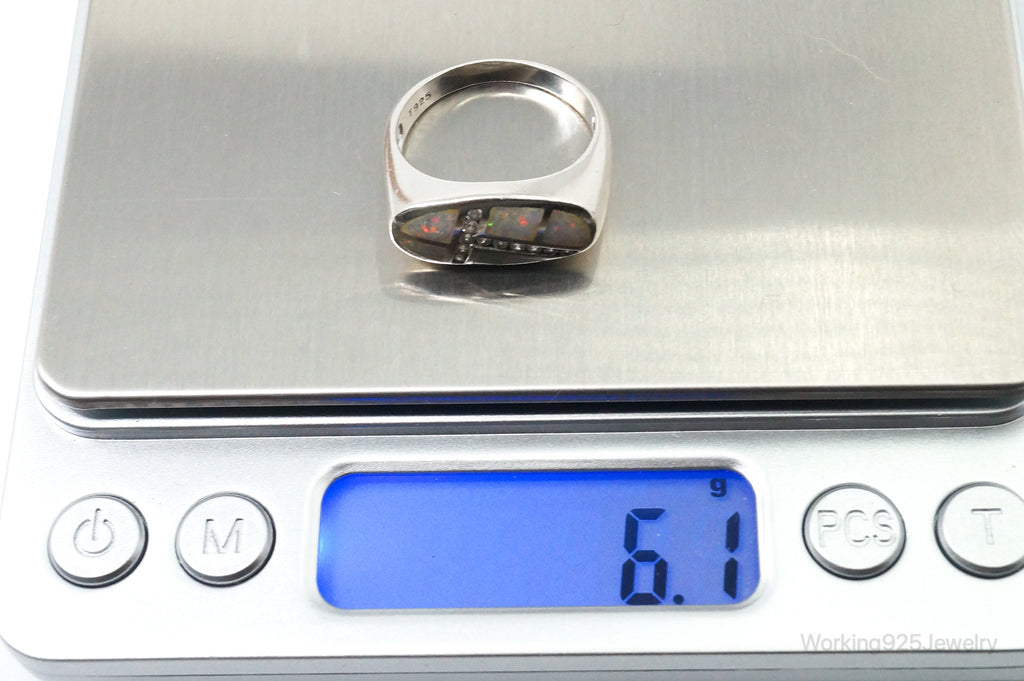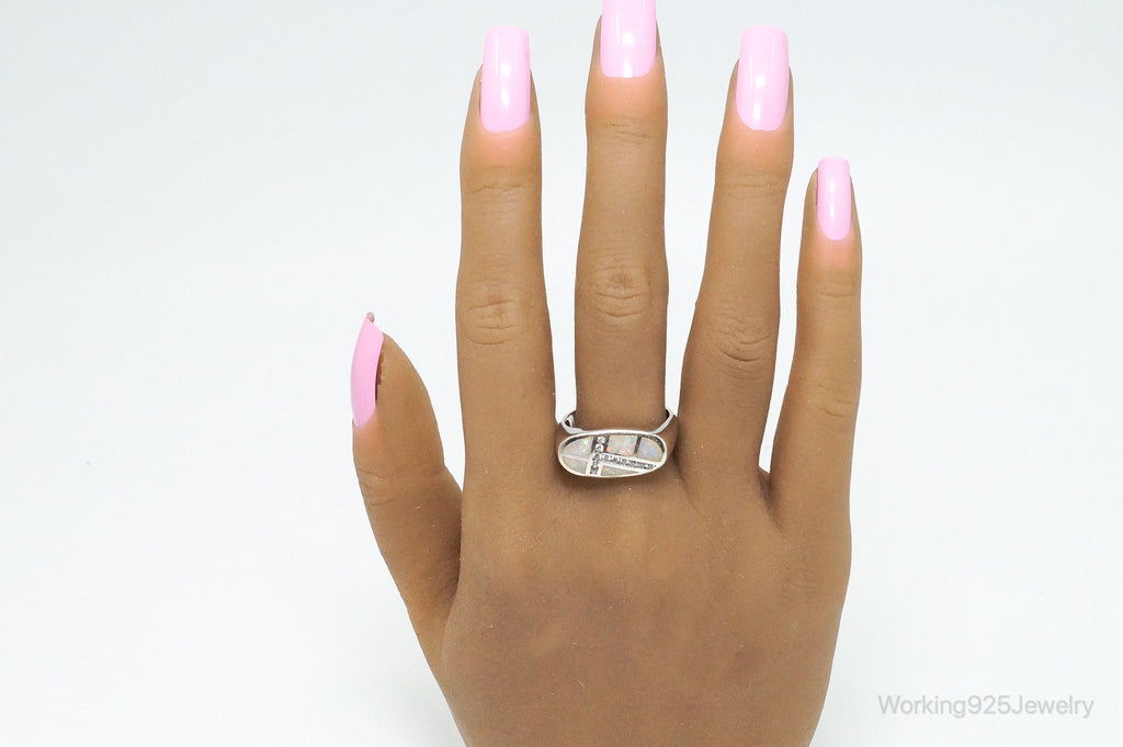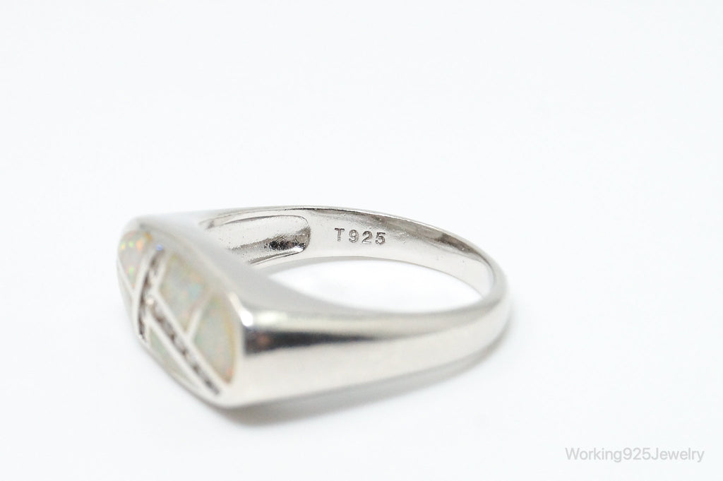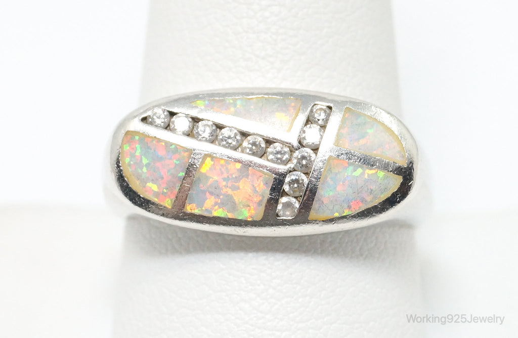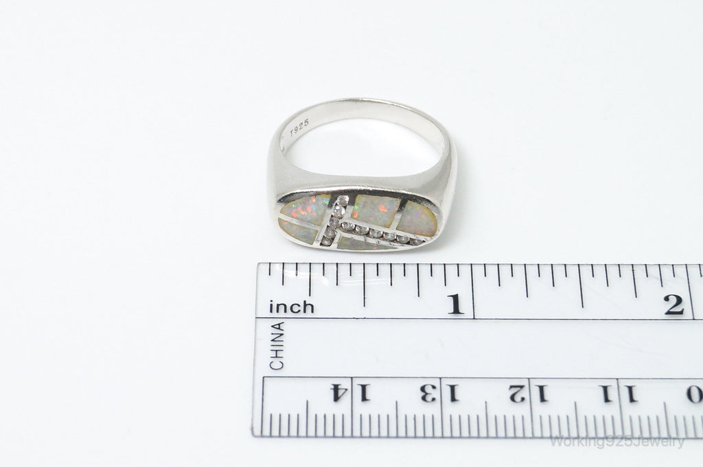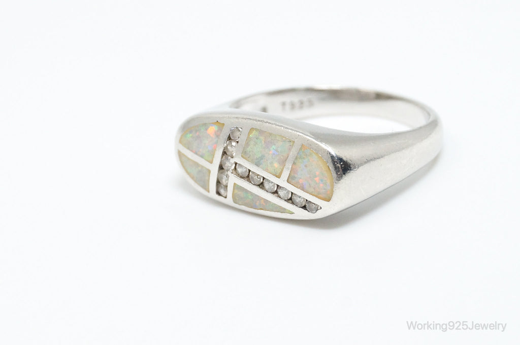 Vintage Art Deco Style Opal CZ Accented Sterling Silver Ring - Size 9.75