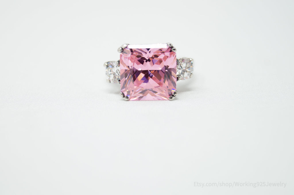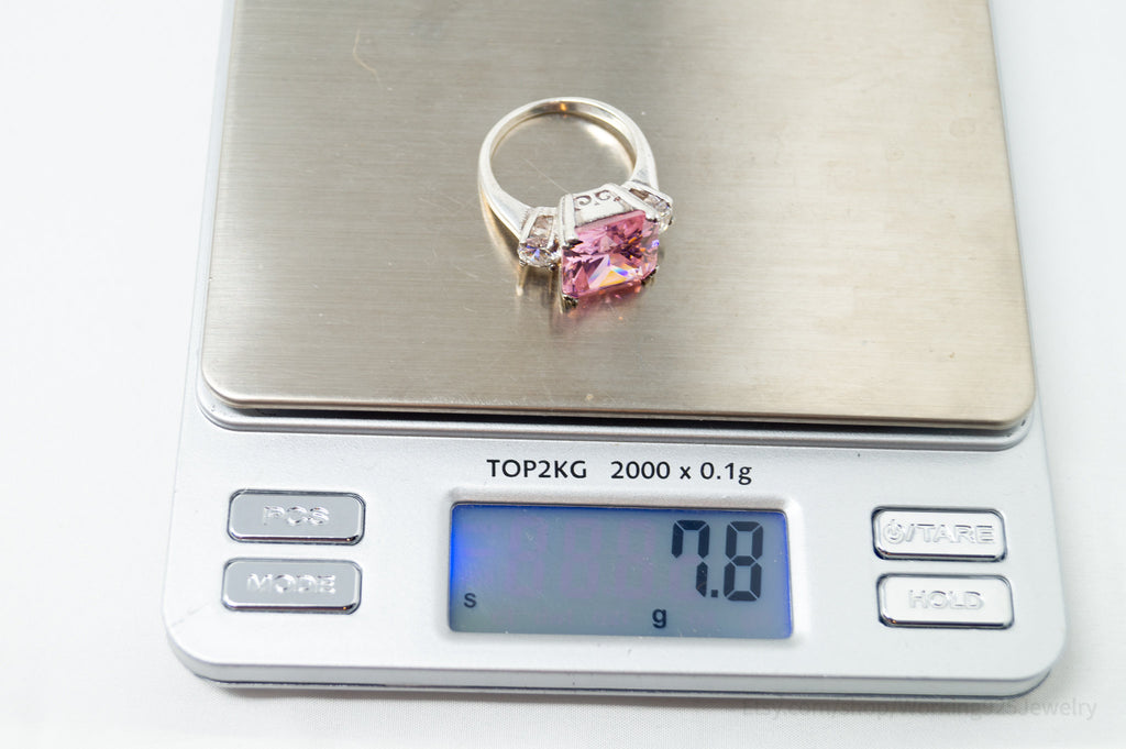 Vintage Art Deco Style Pink Topaz CZ Statement Ring Sterling Silver - Size 7.5