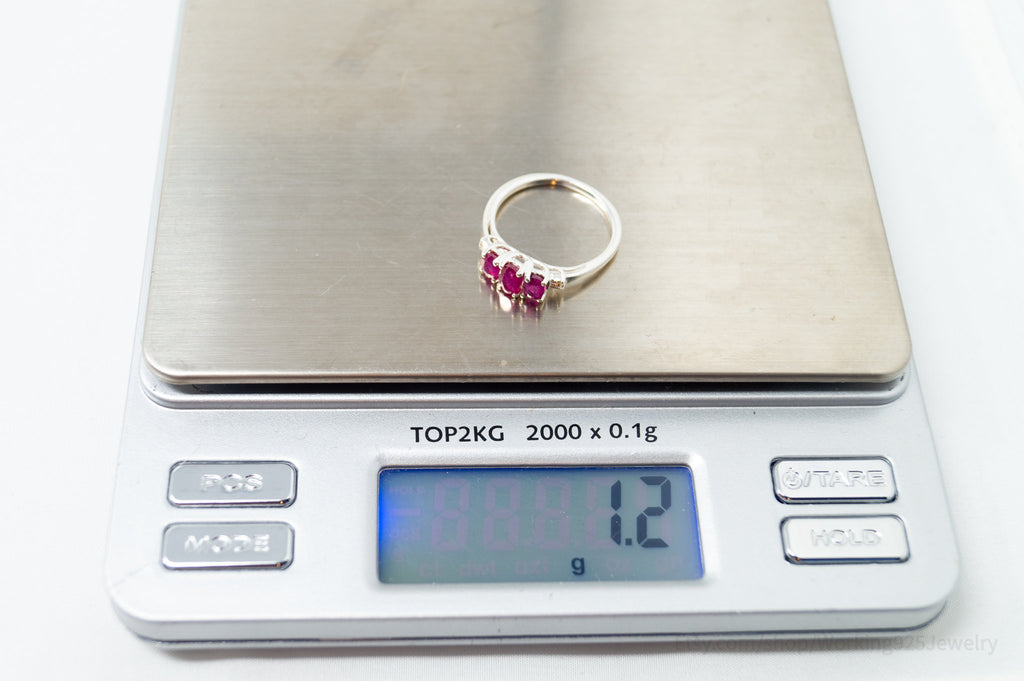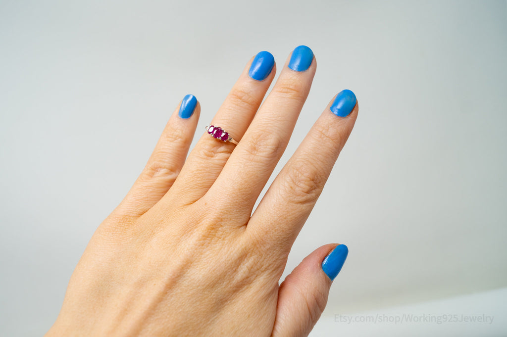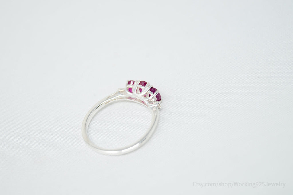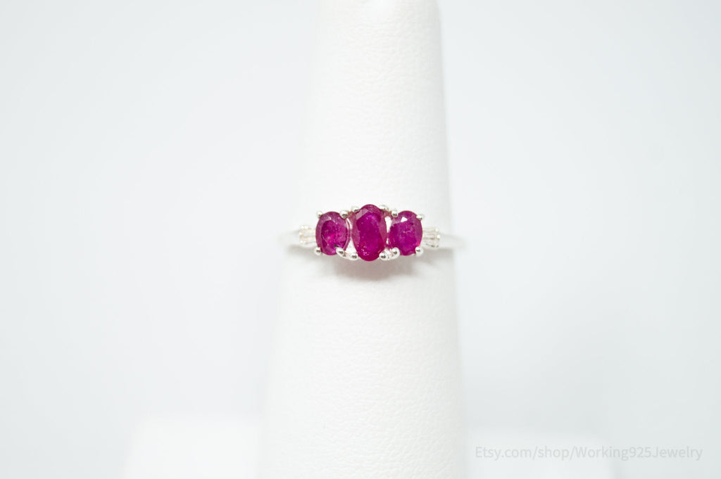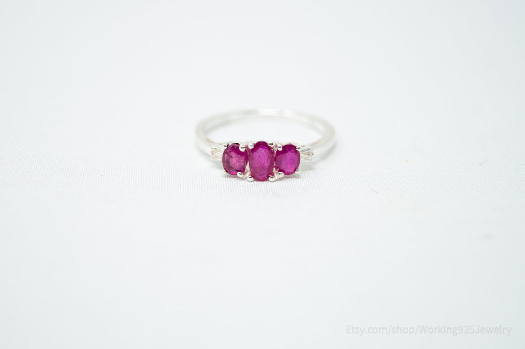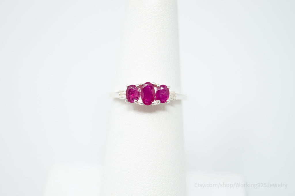 Vintage Art Deco Style Red Ruby Sterling Silver Statement Ring - Size 5