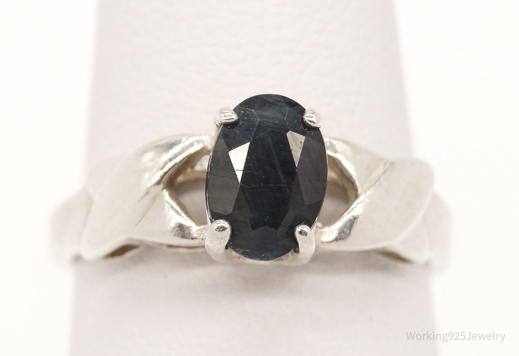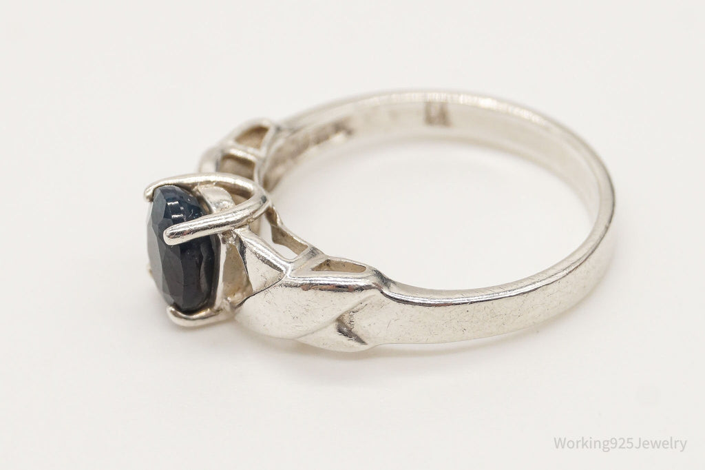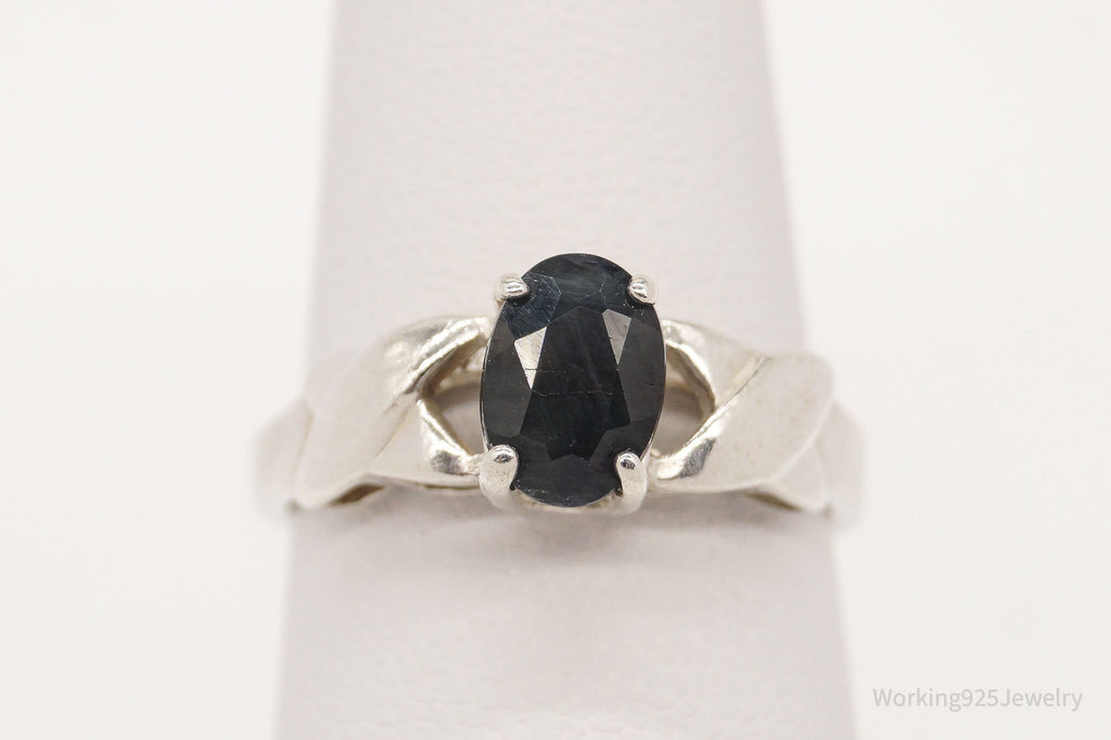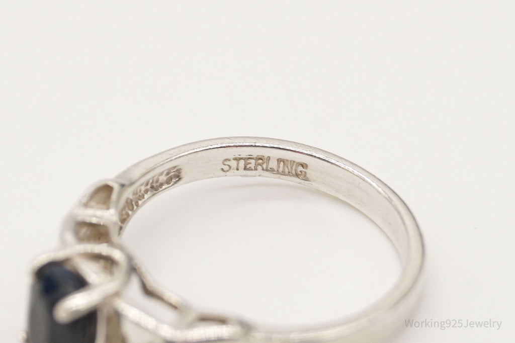 Vintage Art Deco Style Sapphire Sterling Silver Ring - Size 6