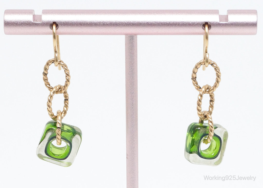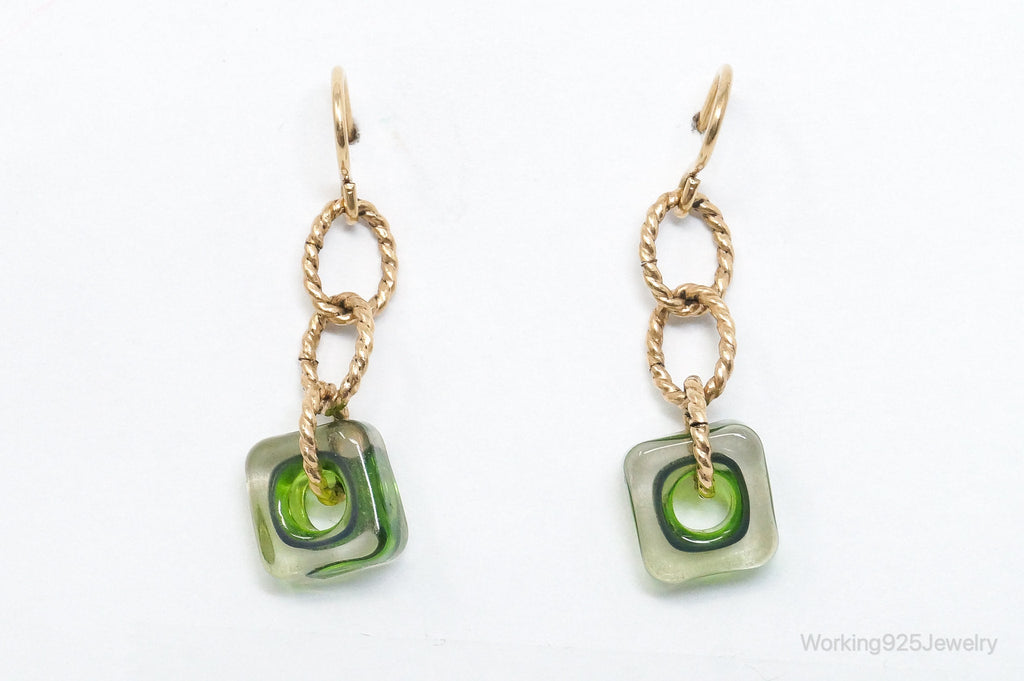 Vintage Art Glass 14K Gold Filled Sterling Silver Dangle Earrings