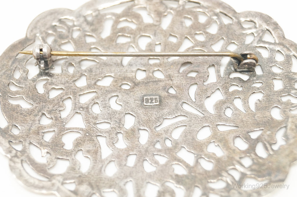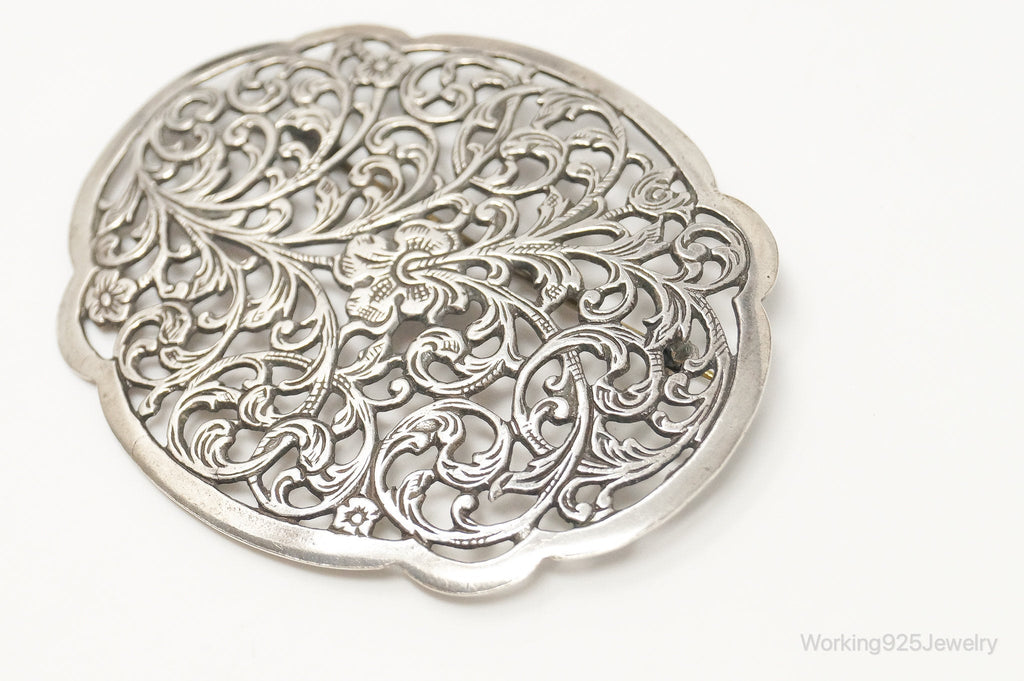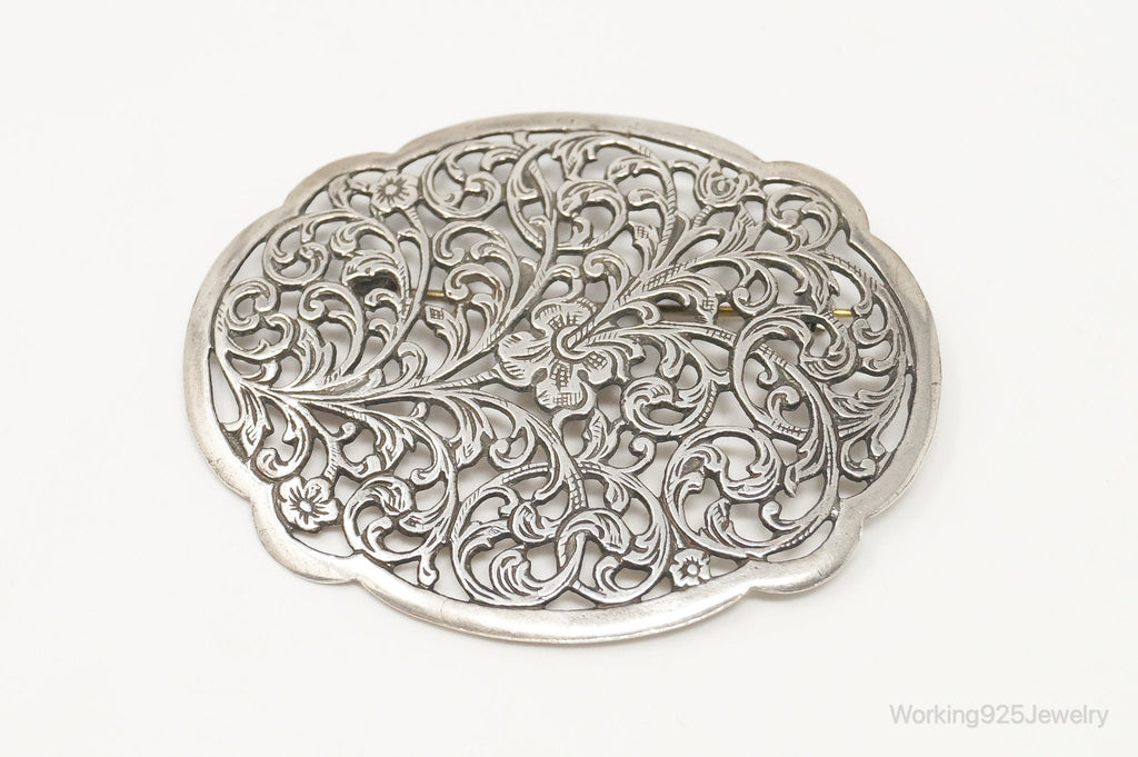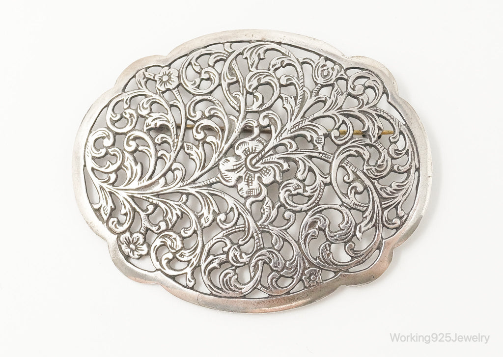 Vintage Art Nouveau Style Motif Floral Sterling Silver Brooch Pin