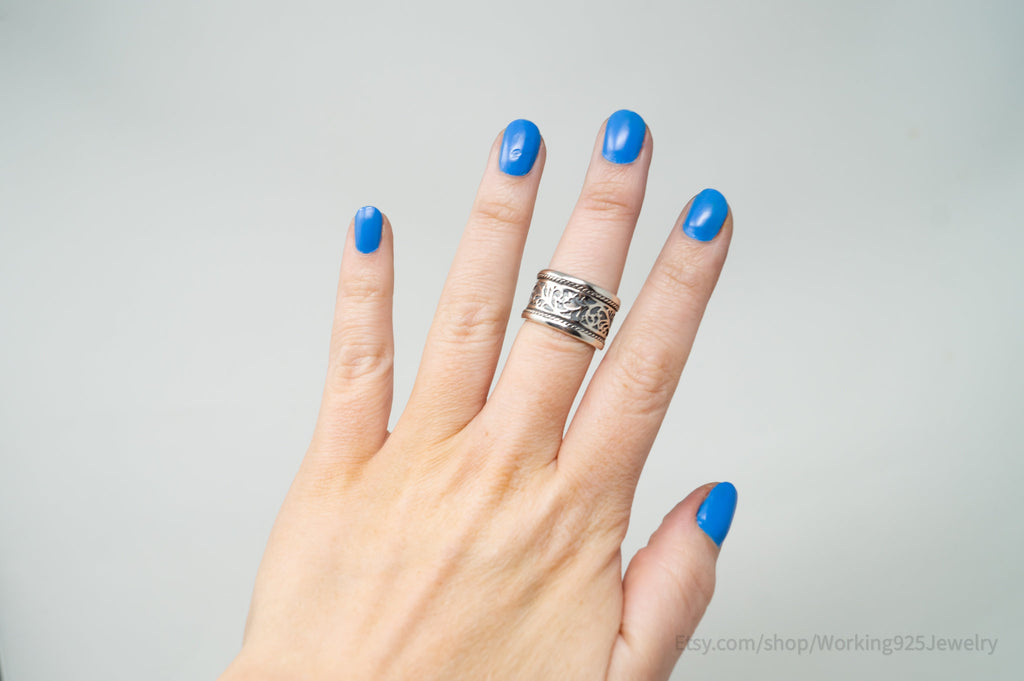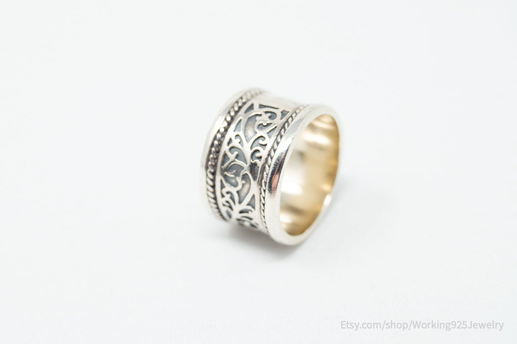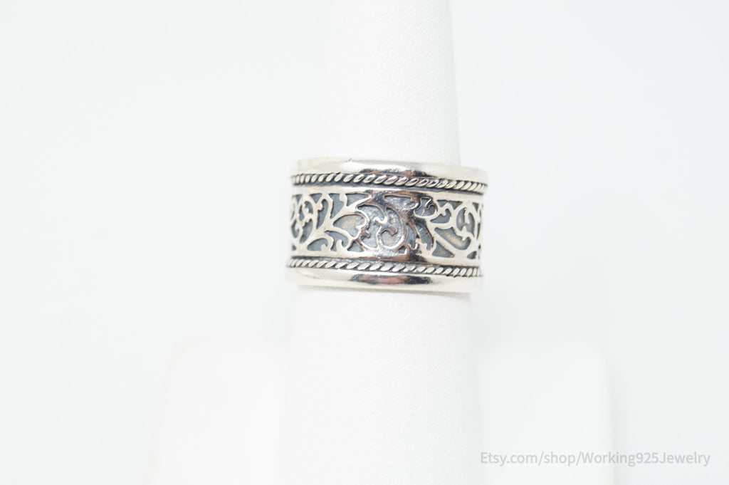 Vintage Art Nouveau Style Scroll Swirl Ring Sterling Silver - Size 8