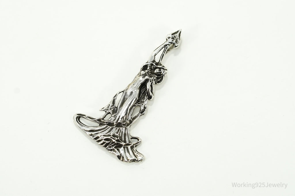 Vintage Art Nouveau Style Woman Sterling Silver Pendant