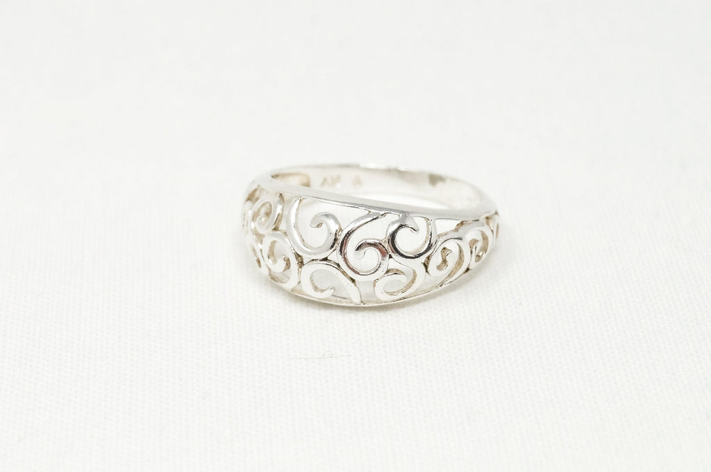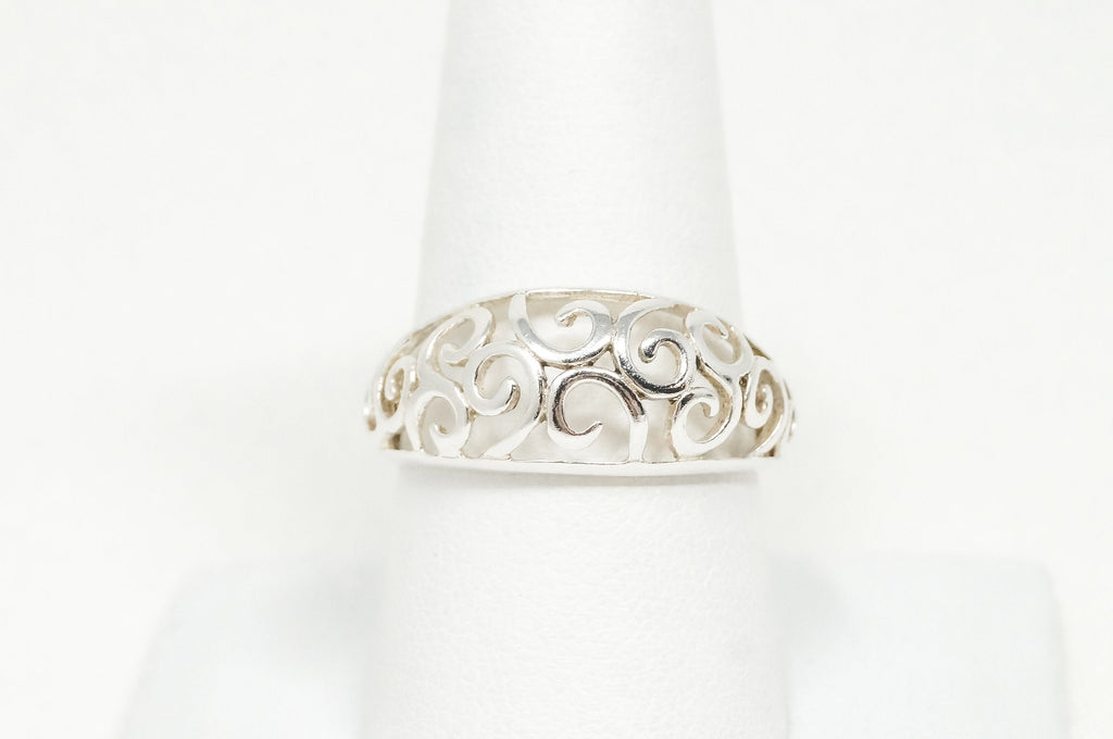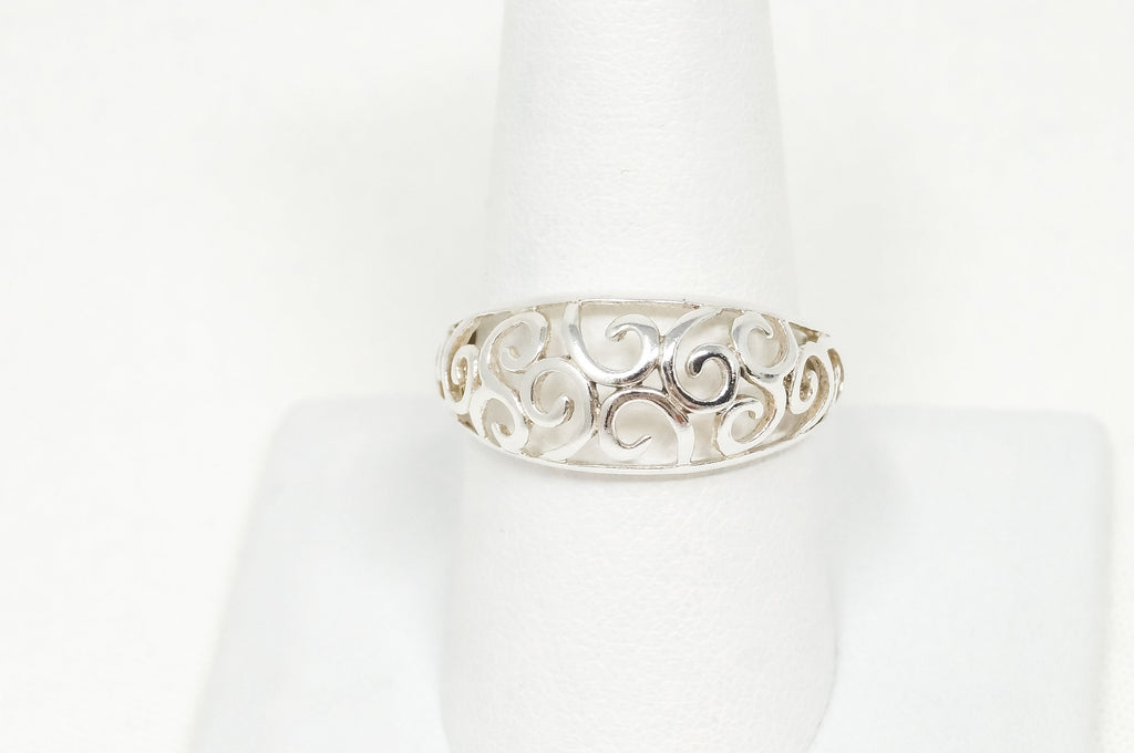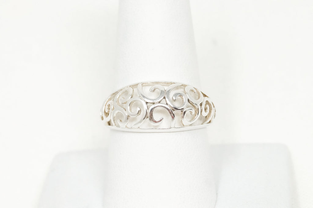 Vintage Art Nouveau Swirl Scroll Cut Out Sterling Silver Ring - Sz 9 -783497378