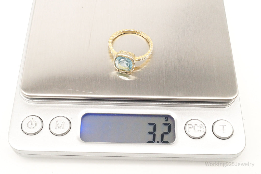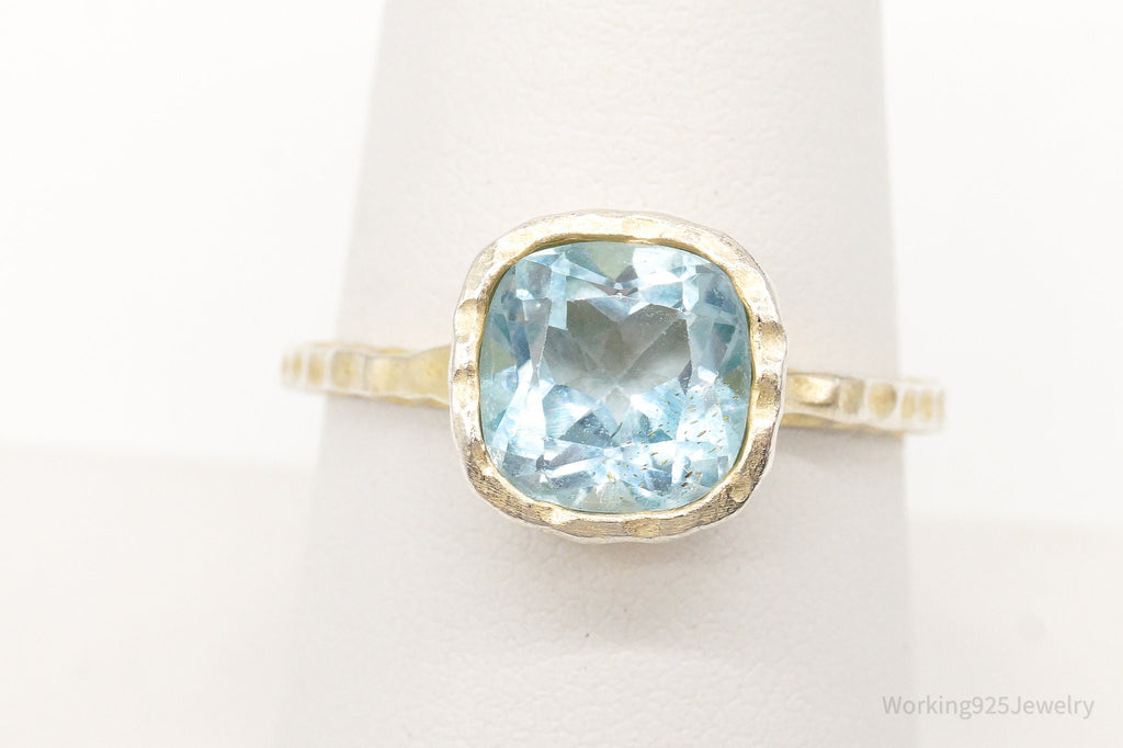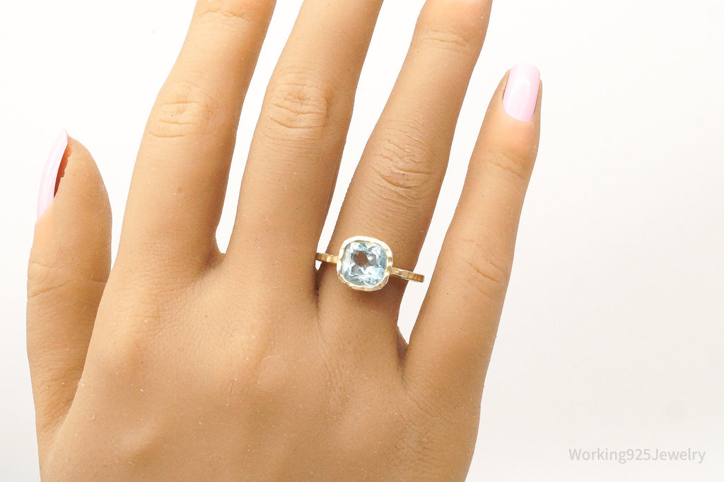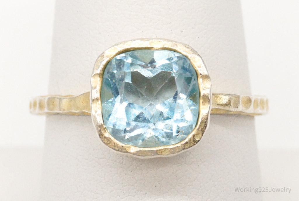 Vintage ATI Large Blue Topaz Gold Vermeil Ring Sterling - Size 8