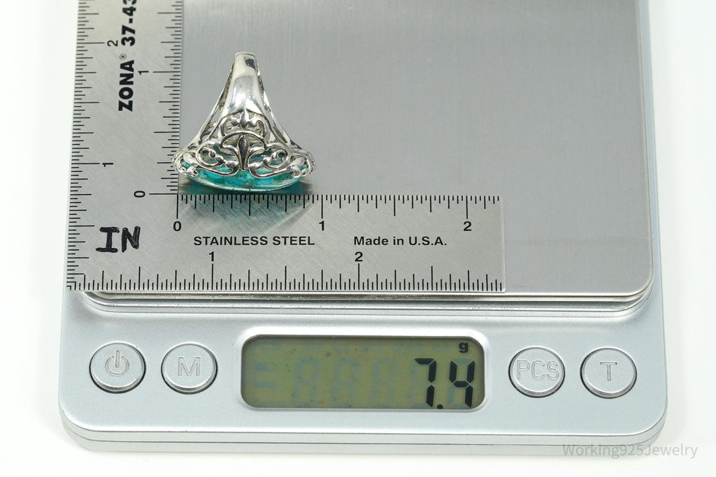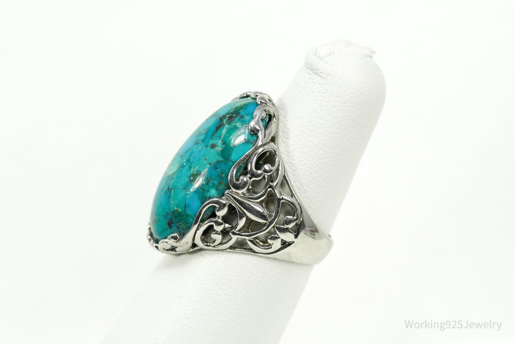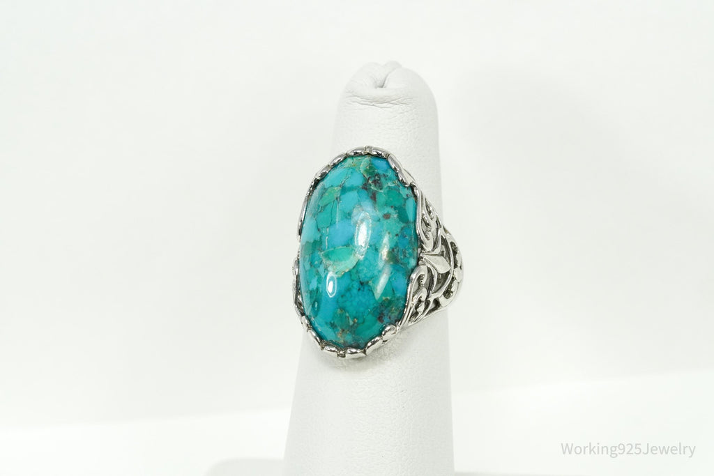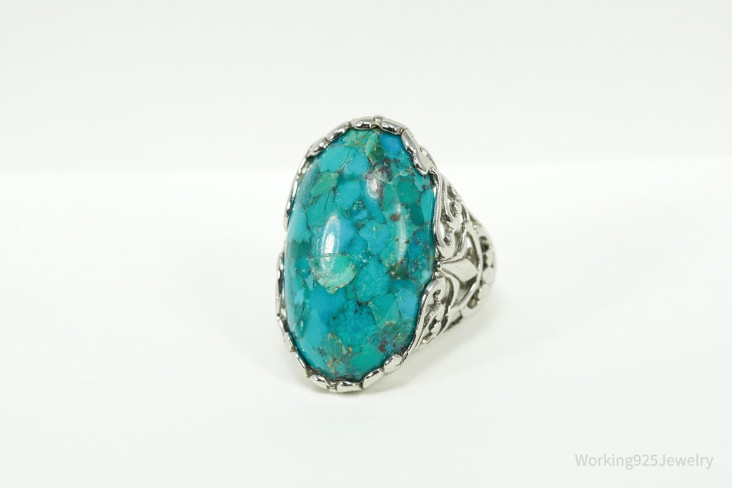 Vintage ATI Large Turquoise Sterling Silver Ring - Size 5.25
