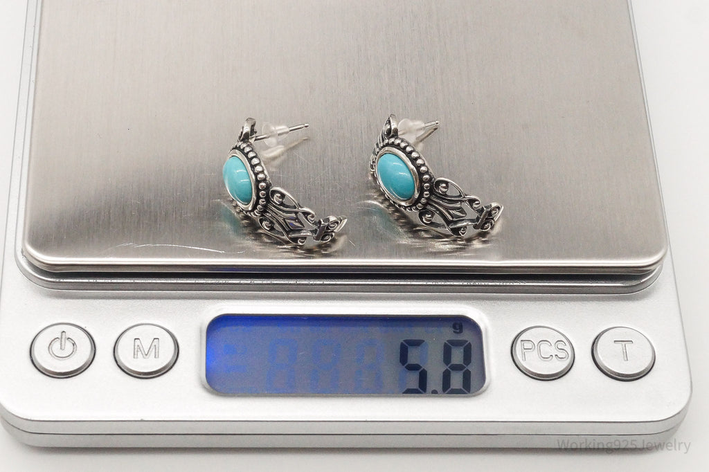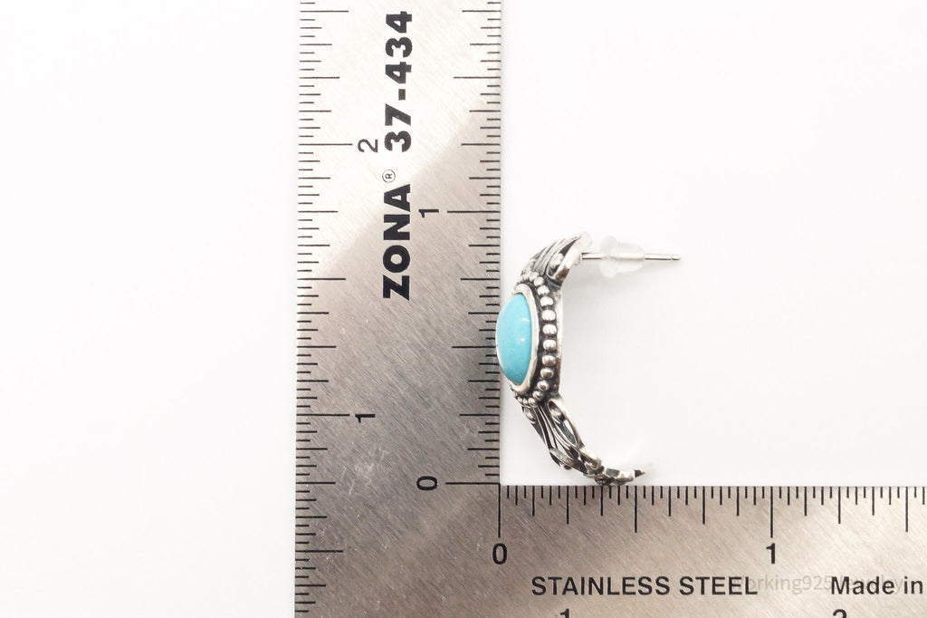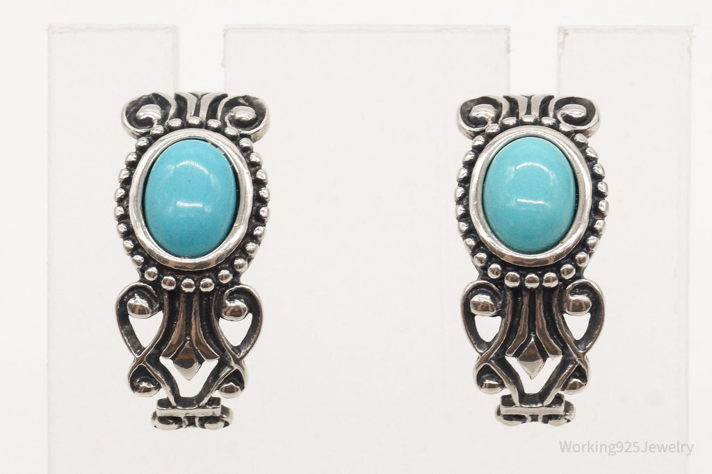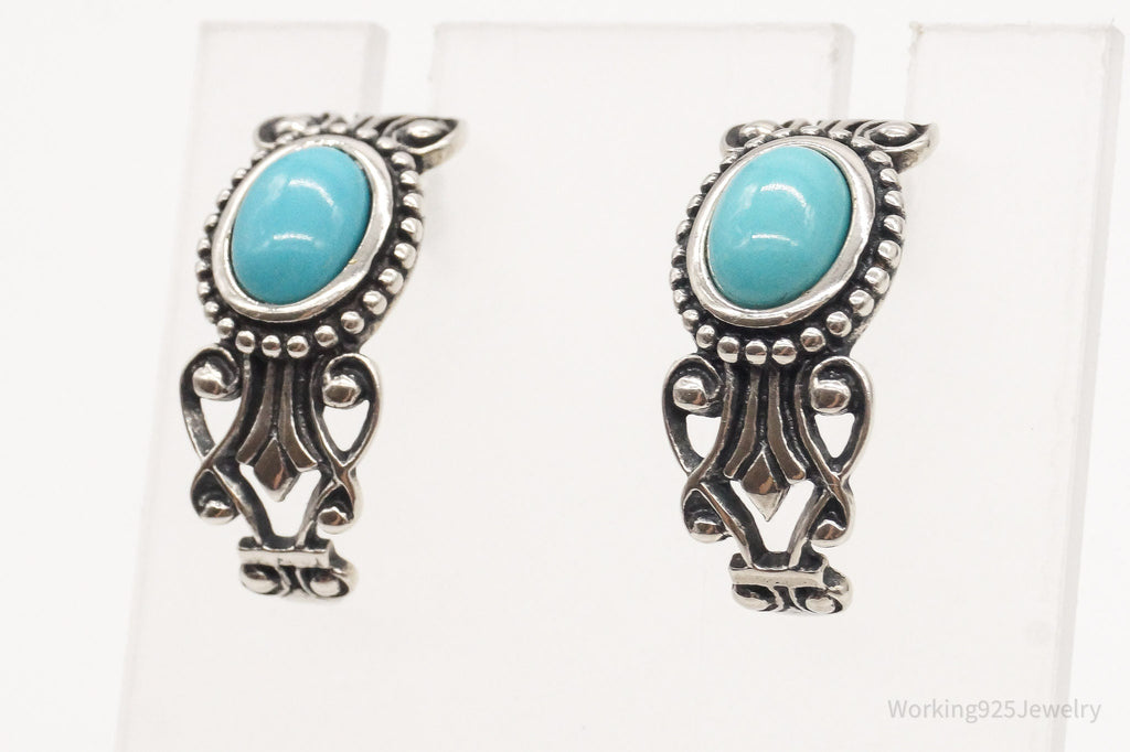 Vintage Avon Blue Turquoise Sterling Silver Hoop Earrings