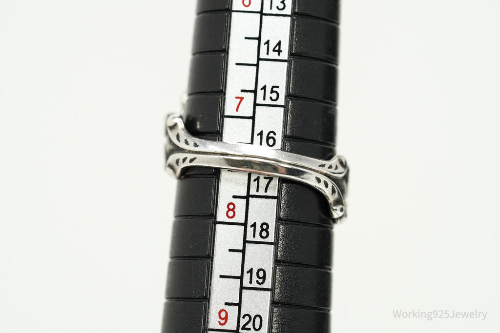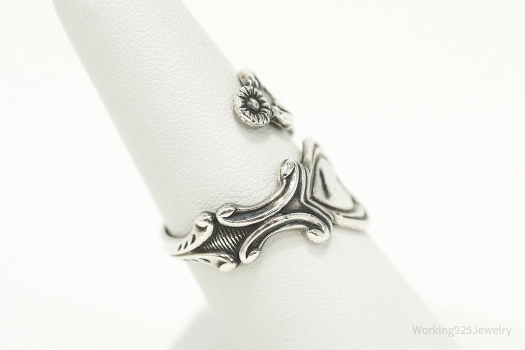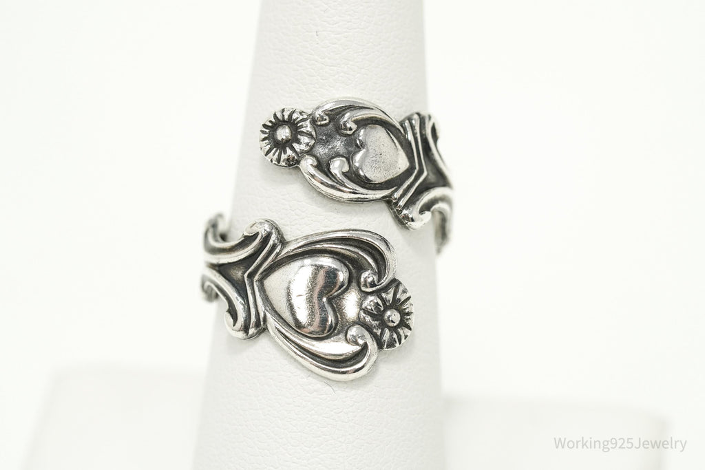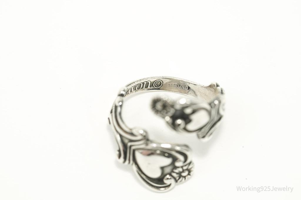 Vintage Avon Hearts & Flowers Sterling Silver Adjustable Wrap Spoon Ring - Size 7.5