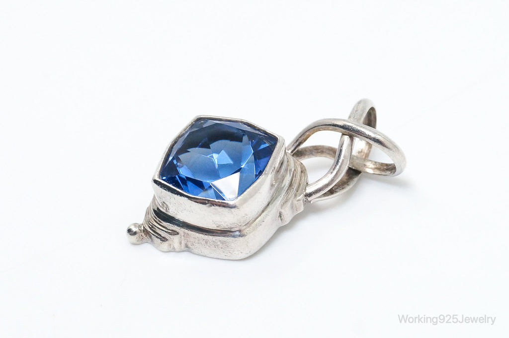 Vintage Bali Designer SARDA Blue Topaz Sterling Silver Pendant