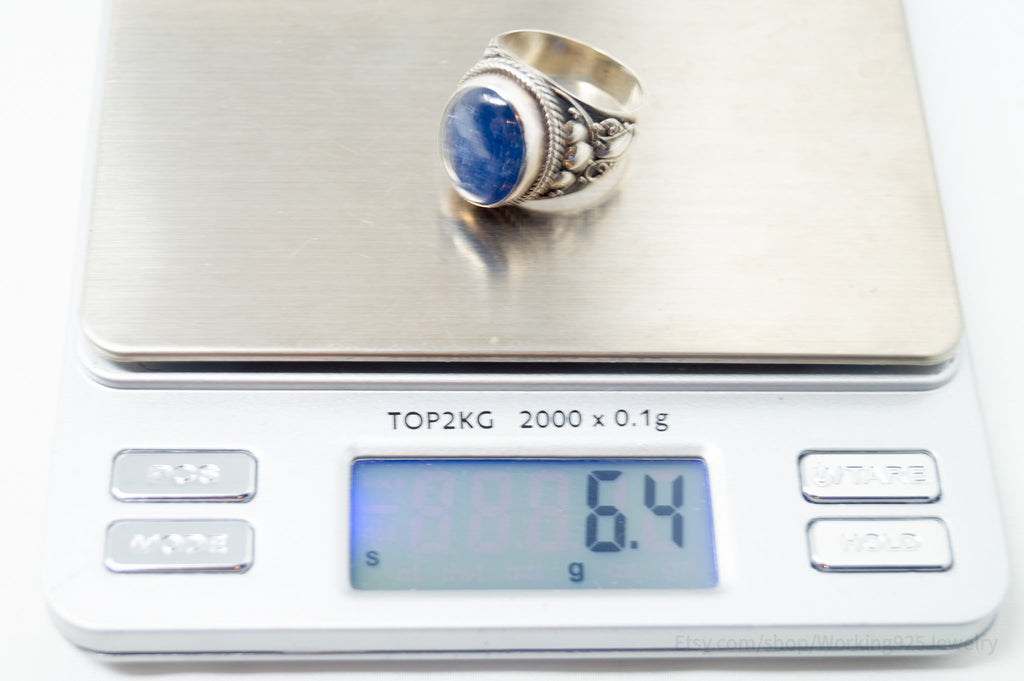 Vintage Bali Style Blue Glass Swirls Filigree Sterling Silver Band Ring - Size 8