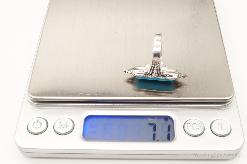 Vintage Bali Style Blue Turquoise Filigree Sterling Silver Ring - Size 6.75