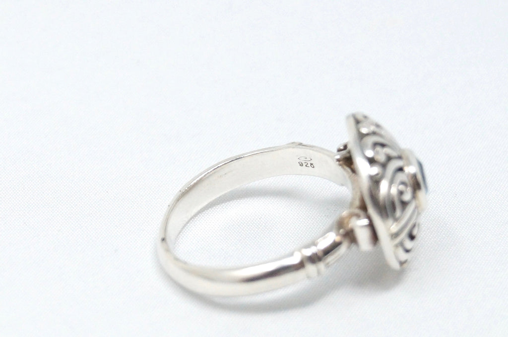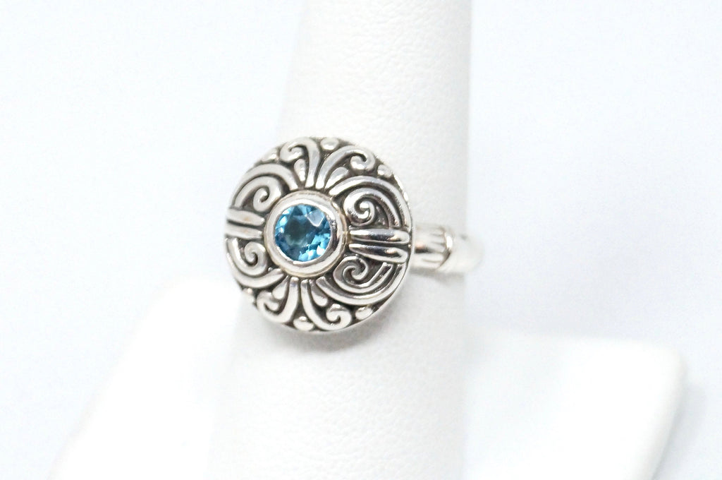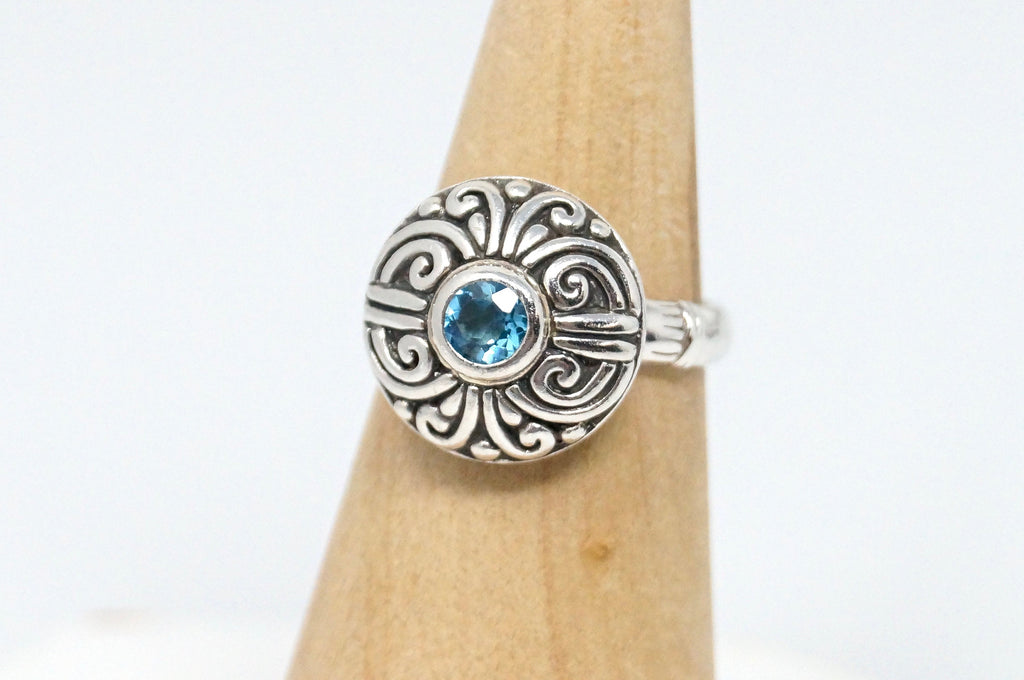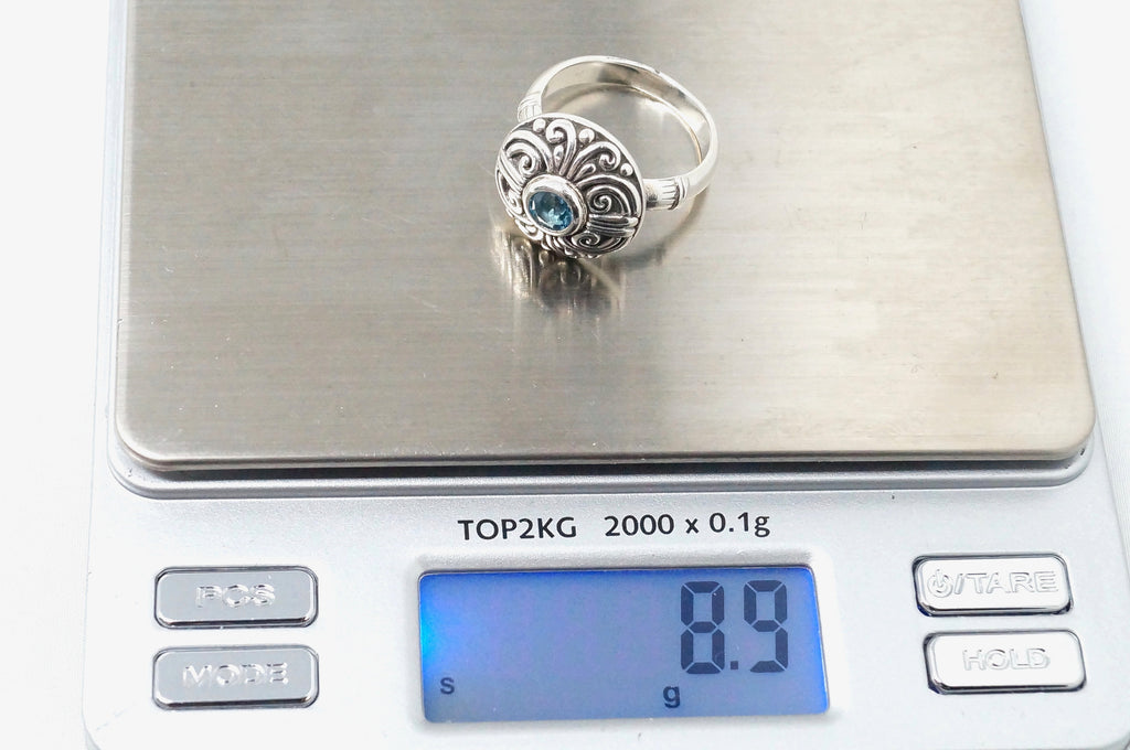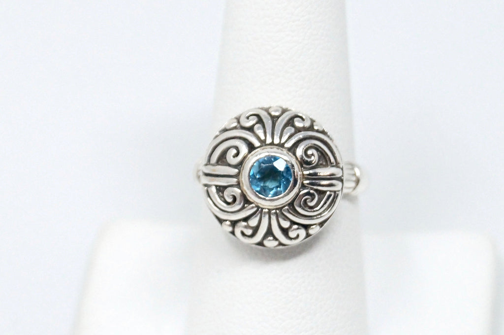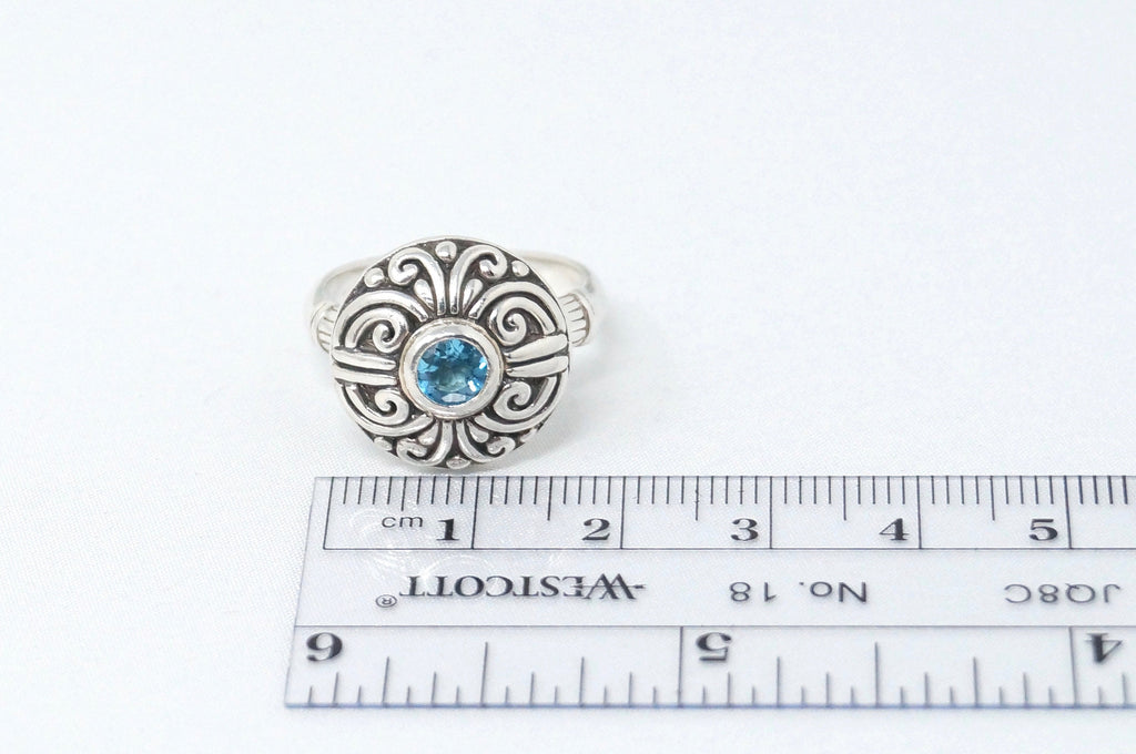 Vintage Balinese Style Blue Topaz Dome Swirl Scroll Sterling Silver Ring Size 8