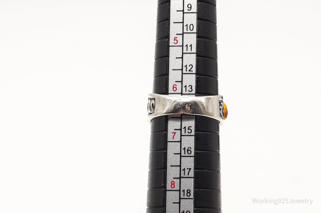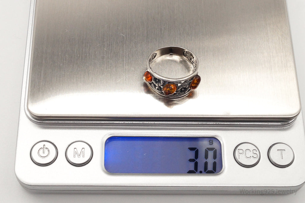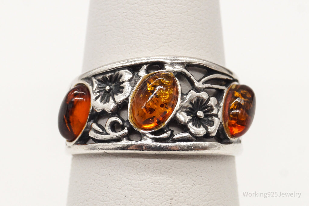 Vintage Baltic Amber Flowers Vines Sterling Silver Ring - Size 6.25