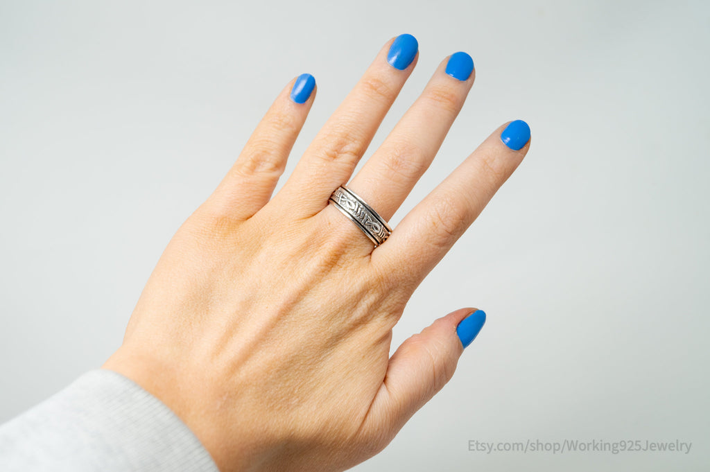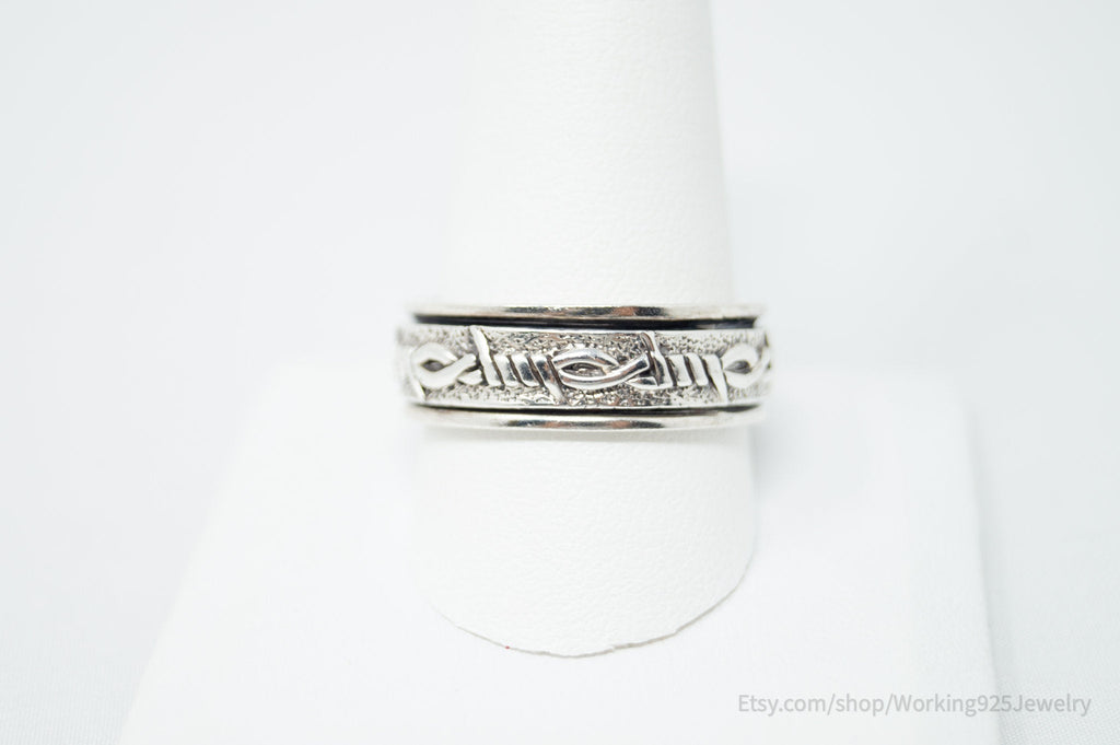 Vintage Barbed Wire Wrap Designer Sterling Silver Spinner Band Ring Sz 11.5