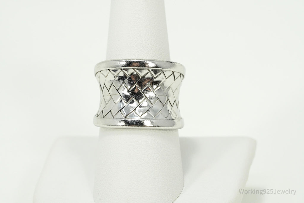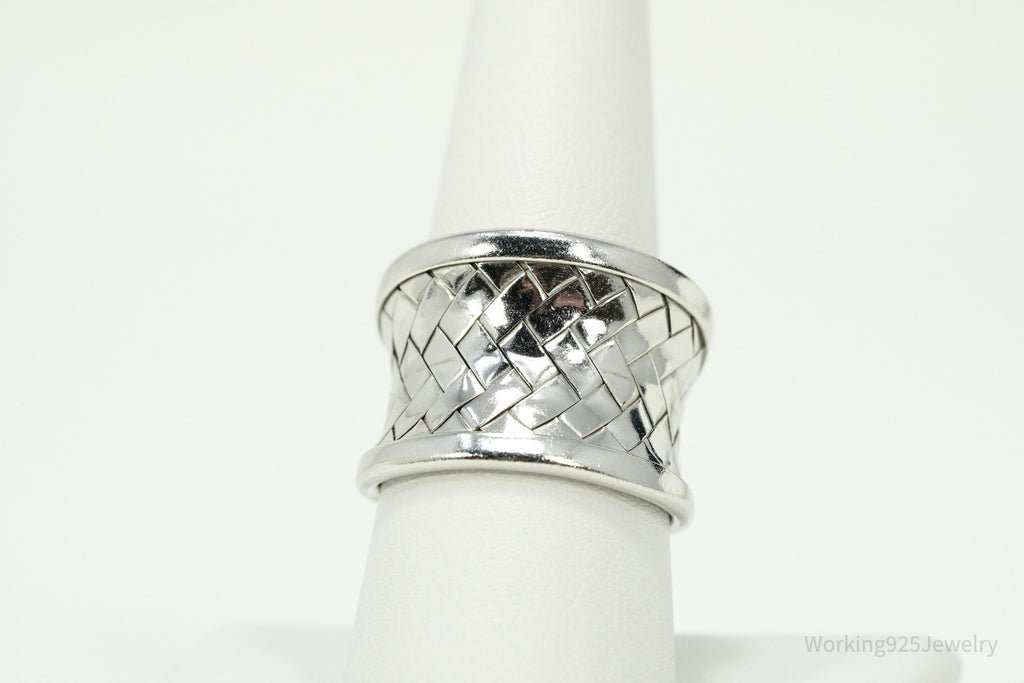 Vintage Basket Weave Sterling Silver Band Ring - Size 8.75