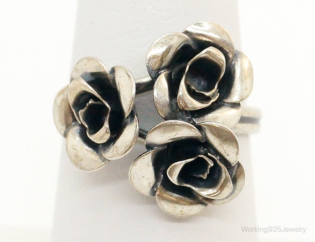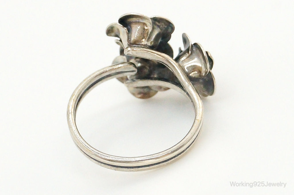 Vintage Beau Flower Bouquet Adjustable Sterling Silver Ring - Size 6.25