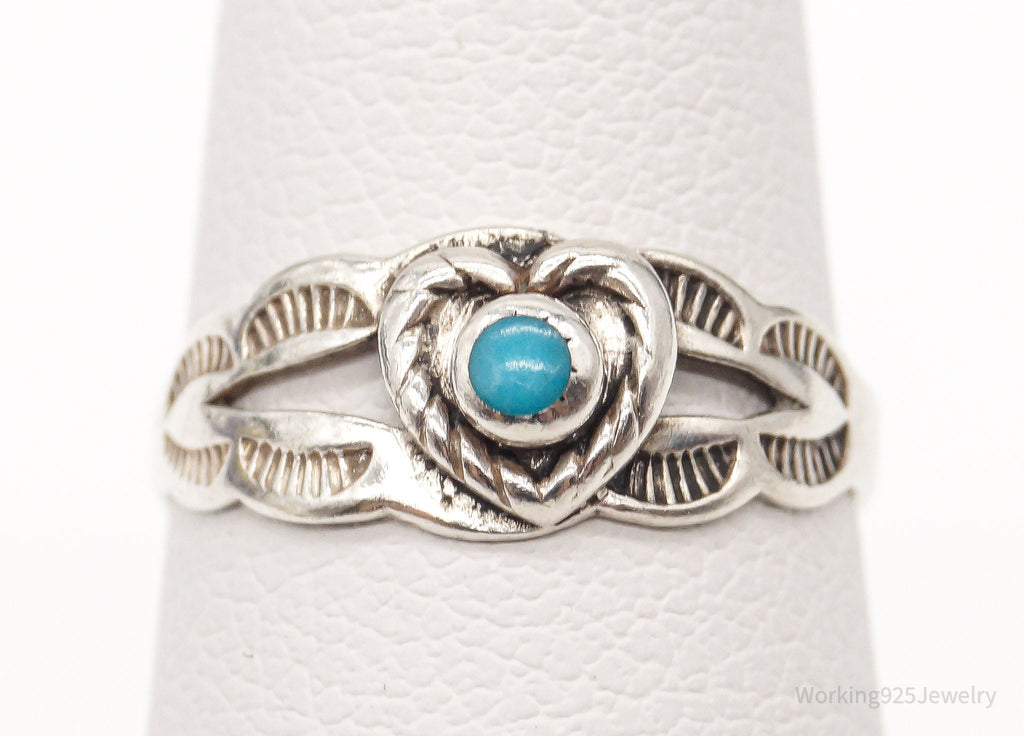 Vintage Bell Trading Post Turquoise Heart Sterling Silver Ring - Size 3.25