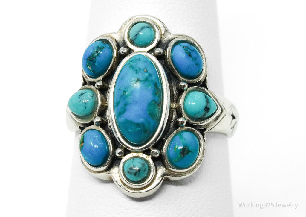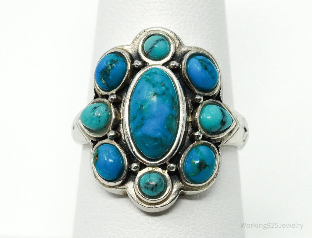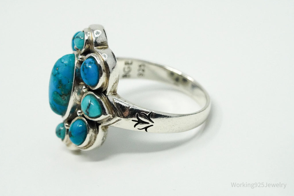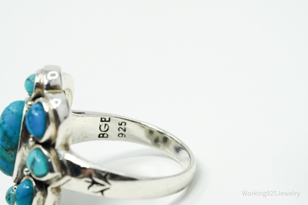 Vintage BGE Turquoise Inlay Flower Sterling Silver Ring - Size 7