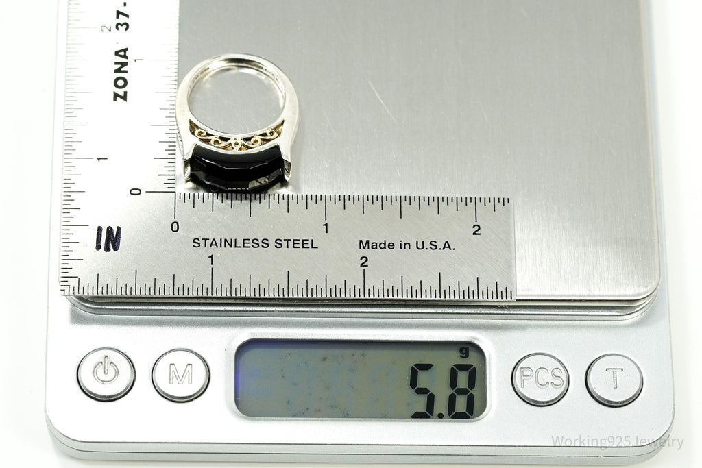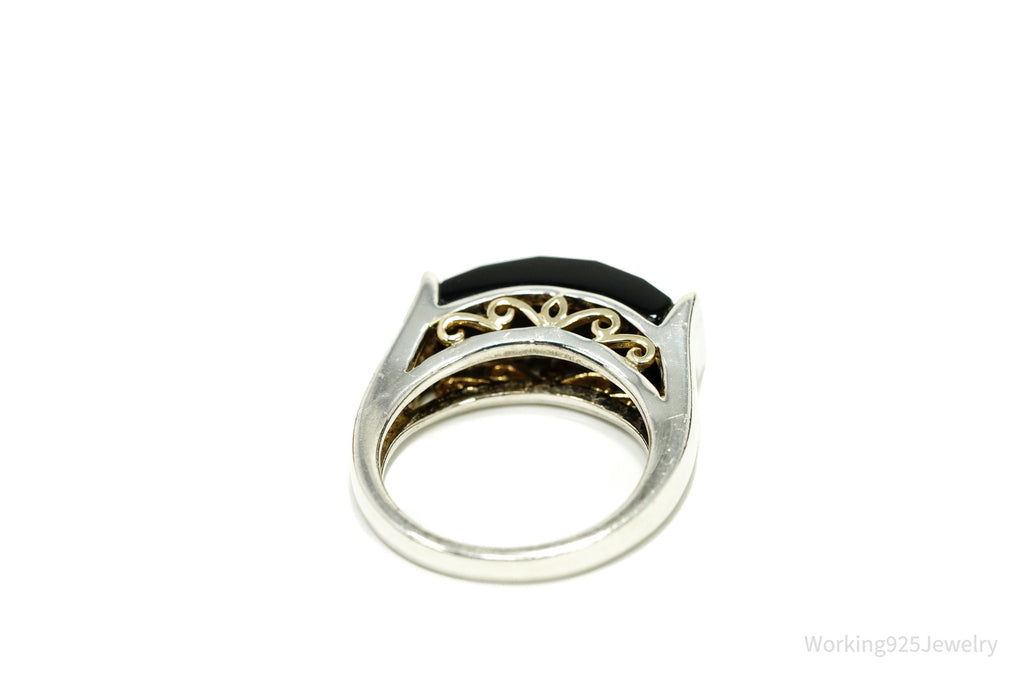 Vintage Black Onyx 14K Gold Sterling Silver Ring - Size 6