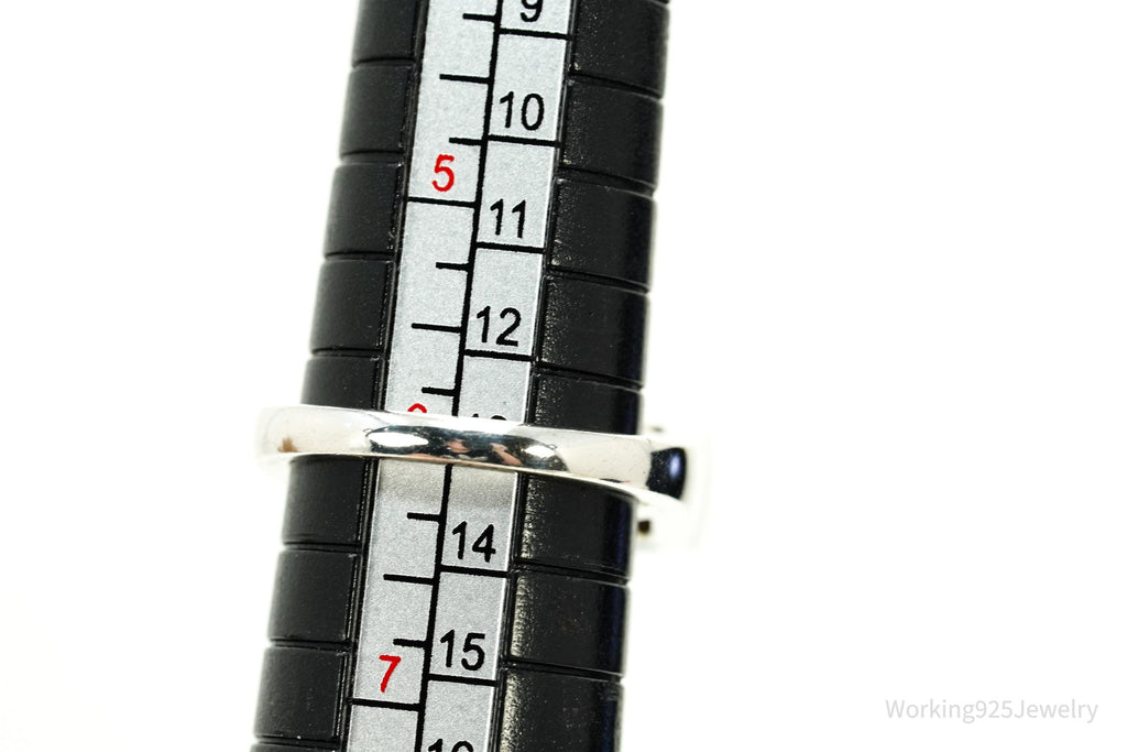 Ring Listings: It is sometimes difficult to determine how a ring will fit without being able to try it on. I always recommend taking your favorite ring to a local jeweler and comparing the way that it sits on a mandrel (ring sizer) with the pictures in the listings prior to purchase. Sometimes wide band rings fit a little differently and I always want my customers to be 100% happy with their purchases! Please let me know if I can help by offering more pictures for size comparison.