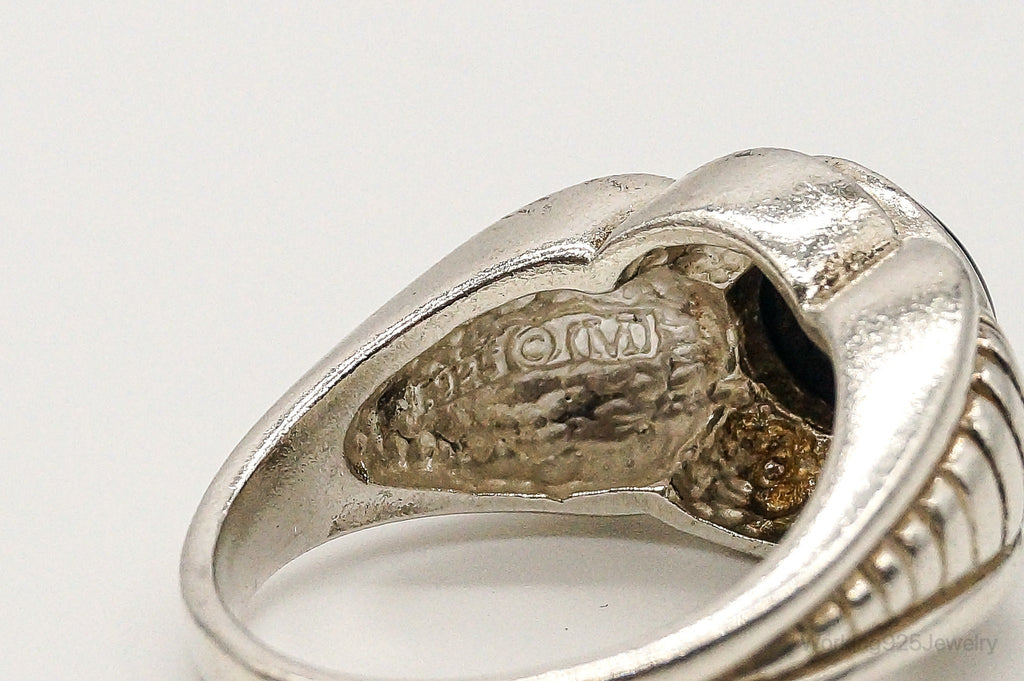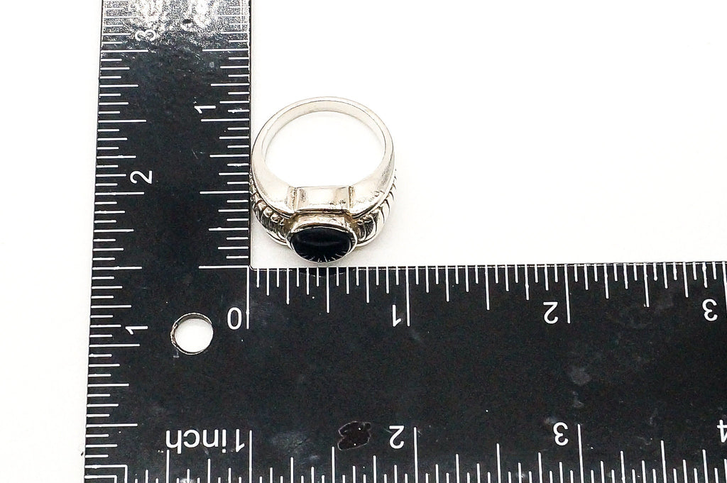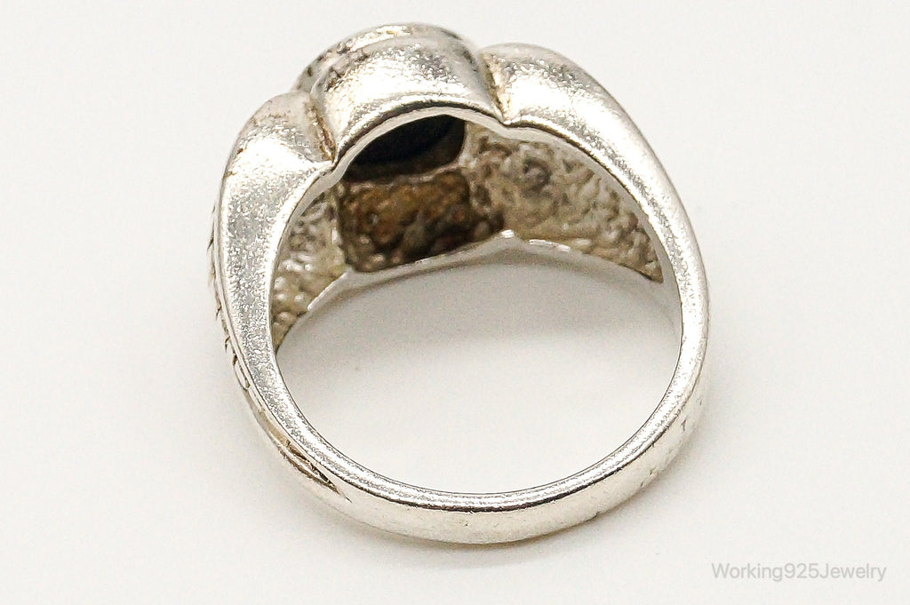Vintage Black Onyx Art Deco Sterling Silver Ring - Size 10