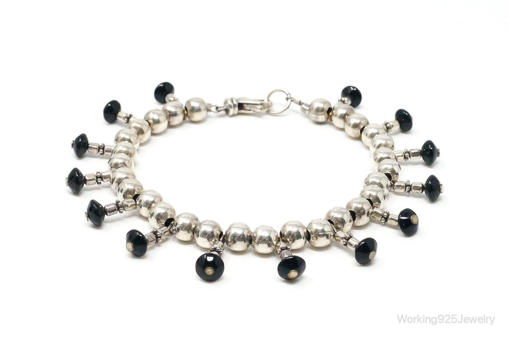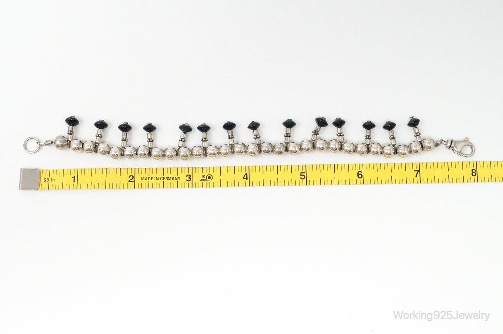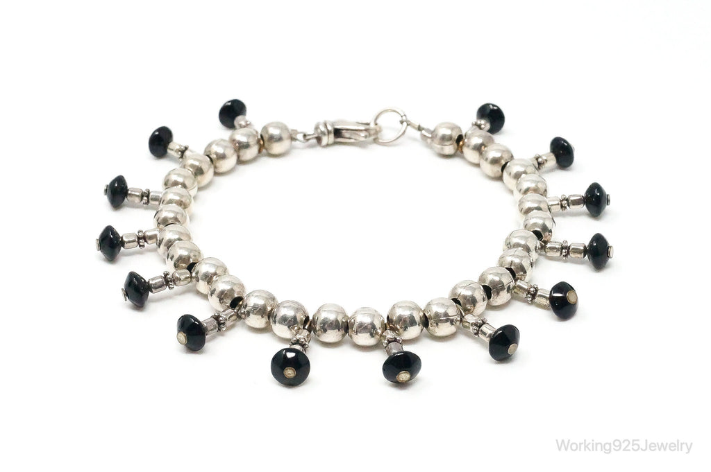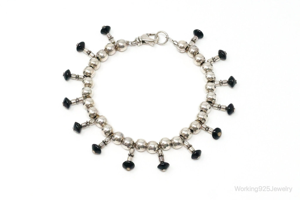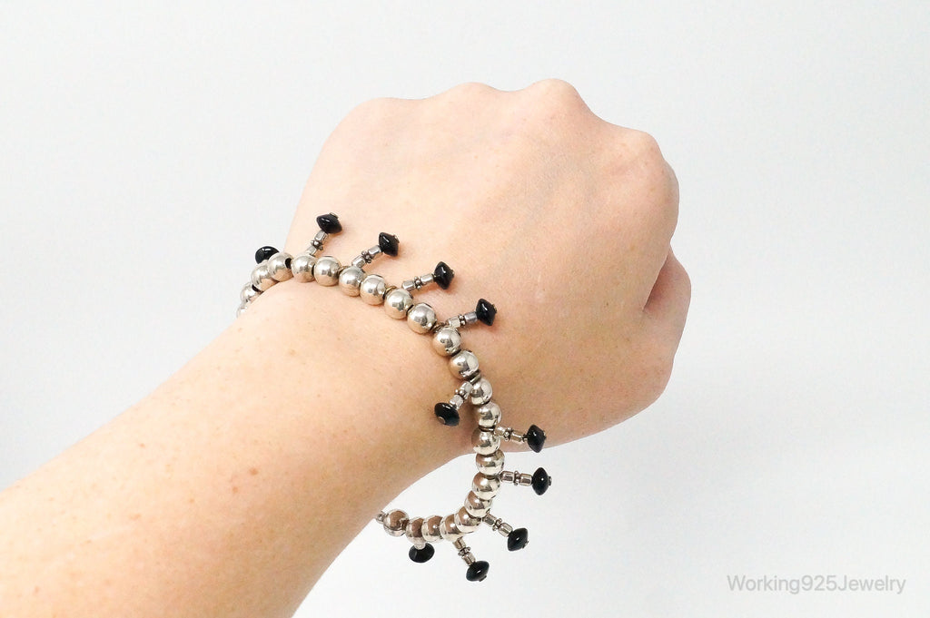 Vintage Black Onyx Ball Bead Sterling Silver Bracelet