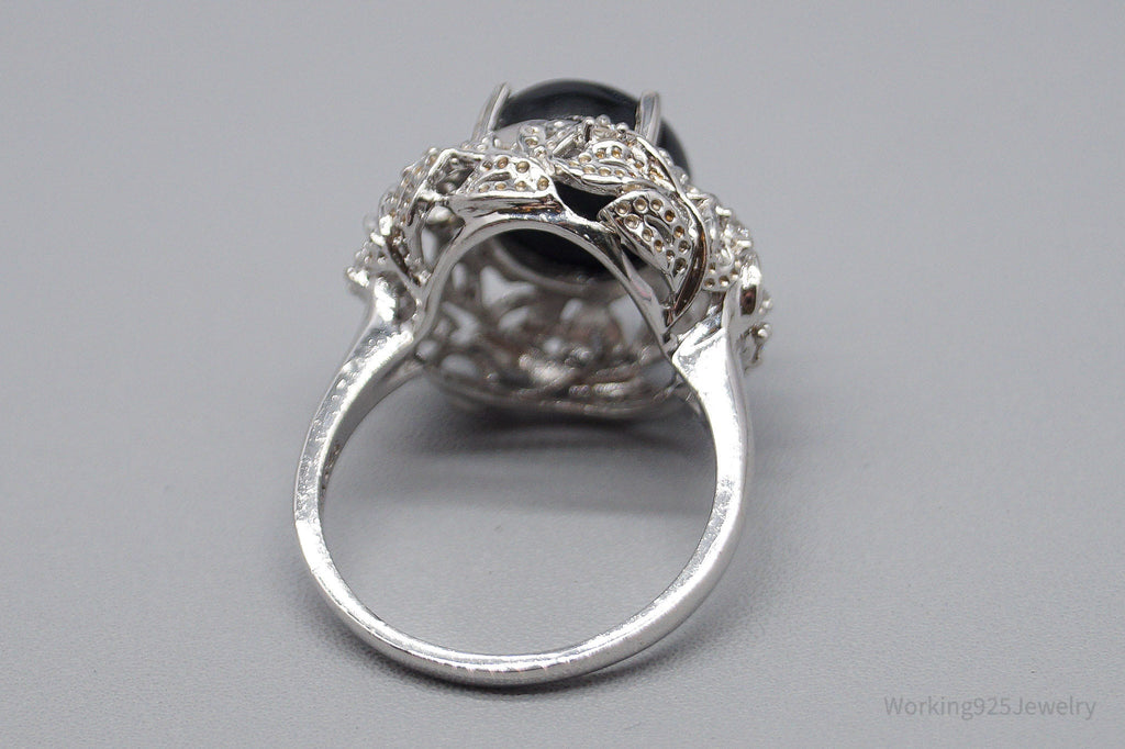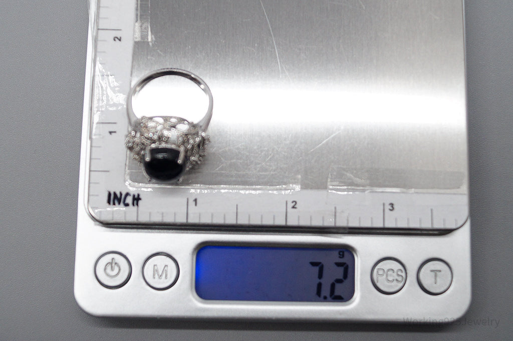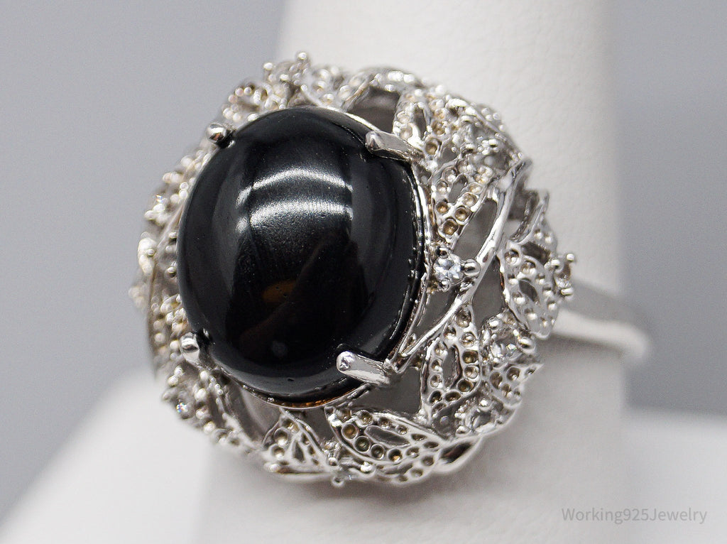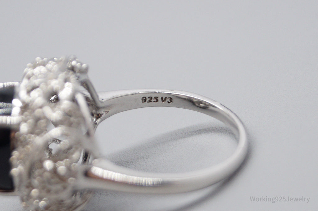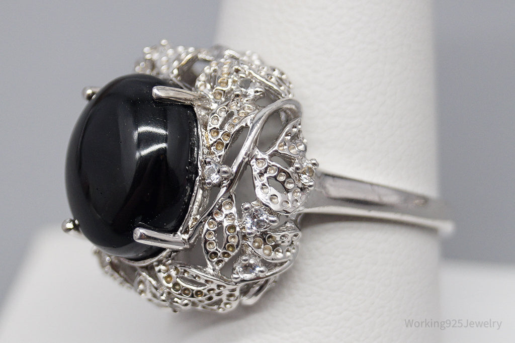Vintage Black Onyx Cubic Zirconia Sterling Silver Ring - Size 9.25