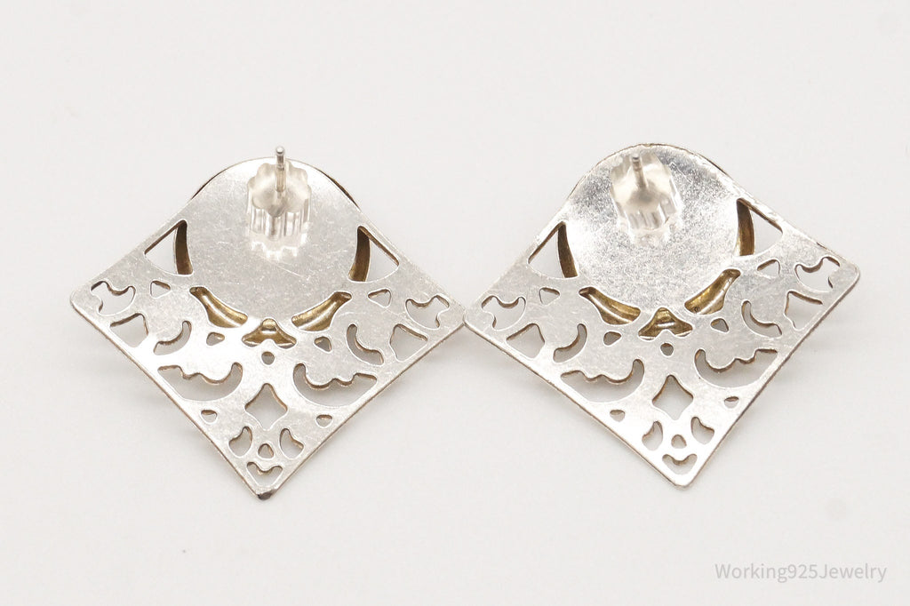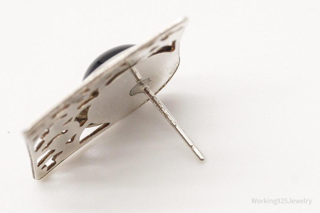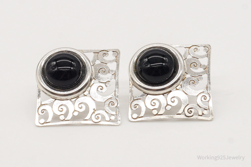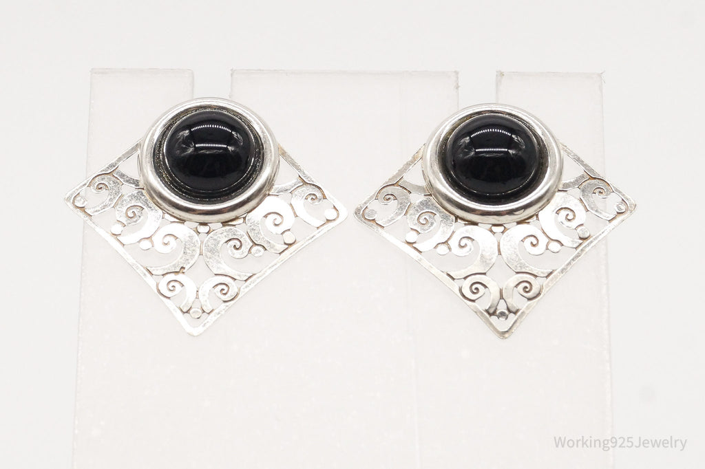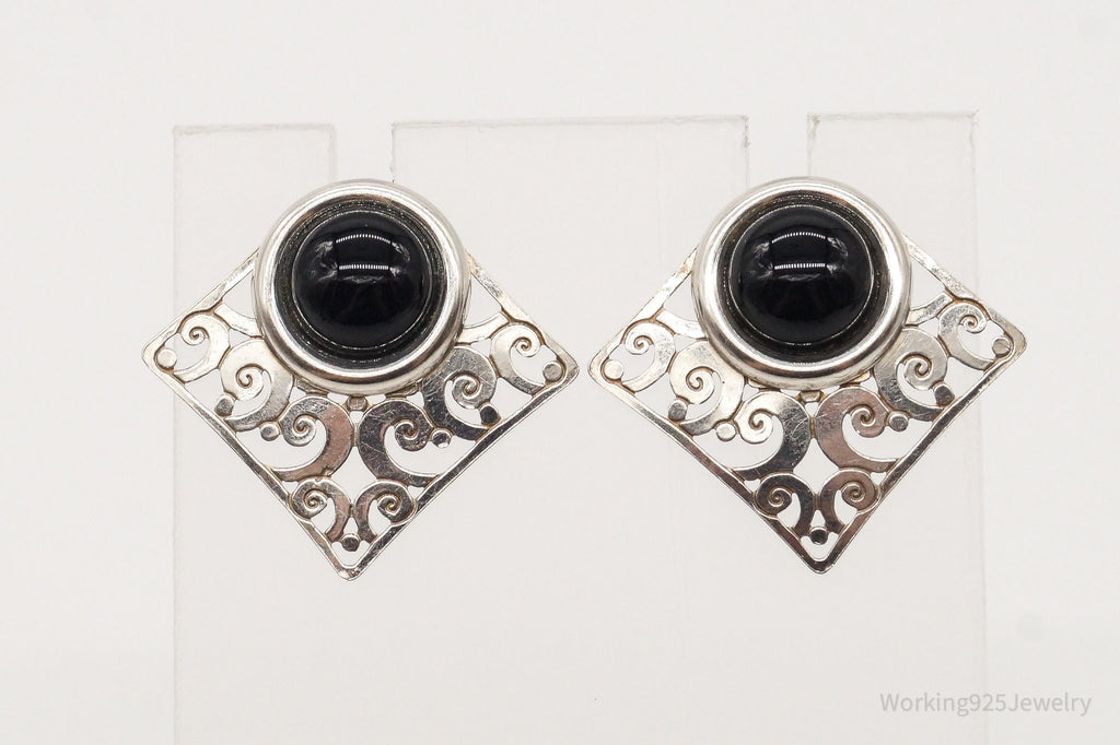 Vintage Black Onyx Filigree Sterling Silver Earrings