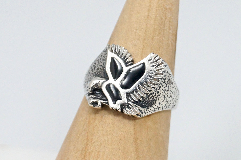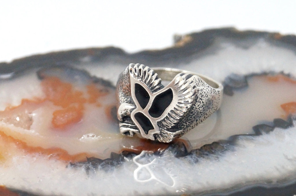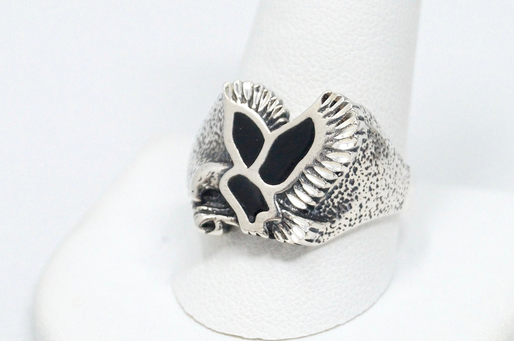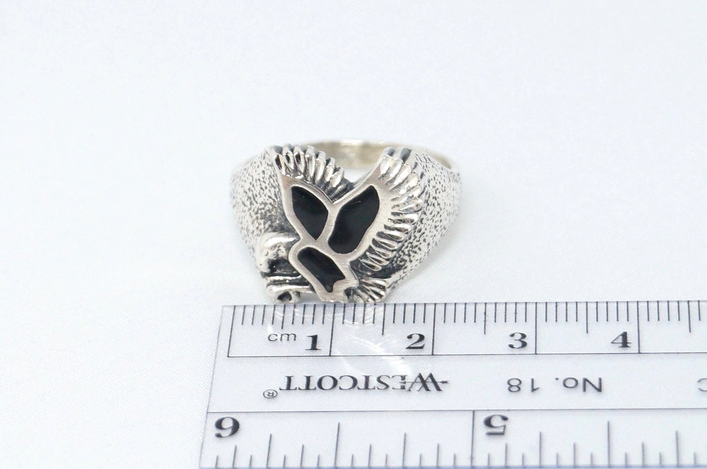 Vintage Black Onyx Gemstone Eagle Southwest Style Sterling Silver Ring Size 11.5