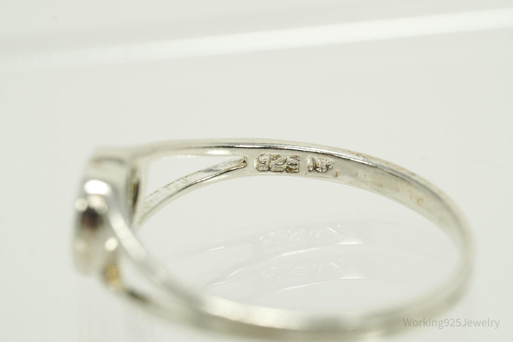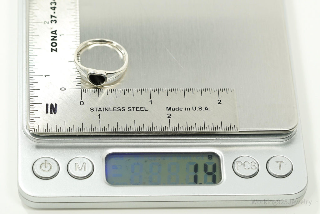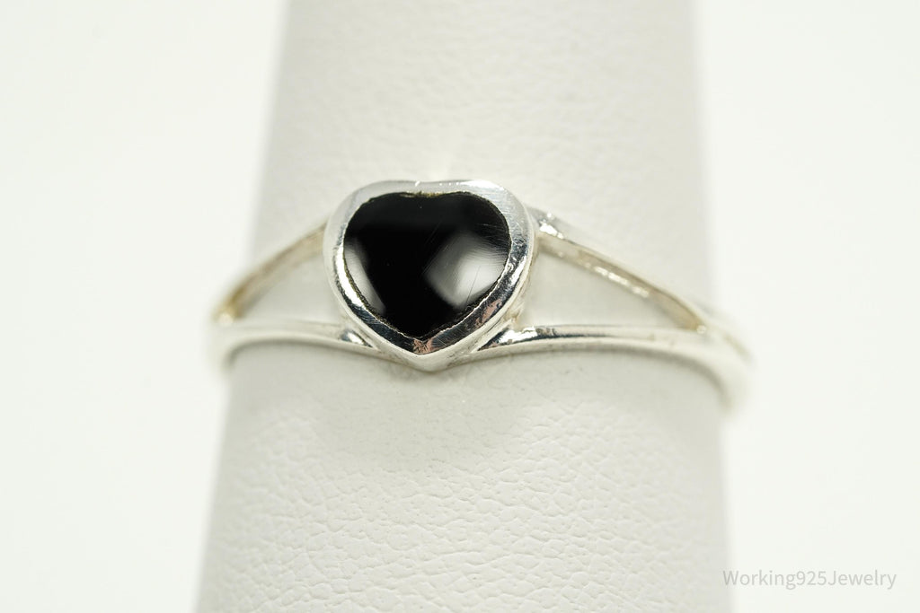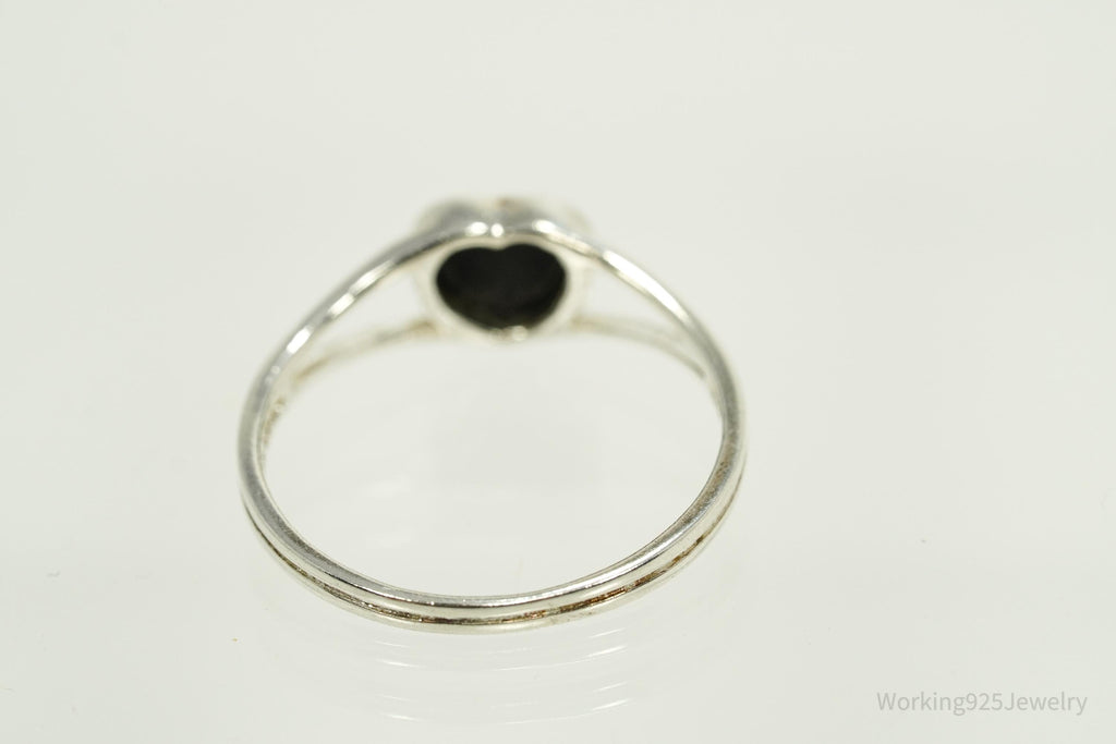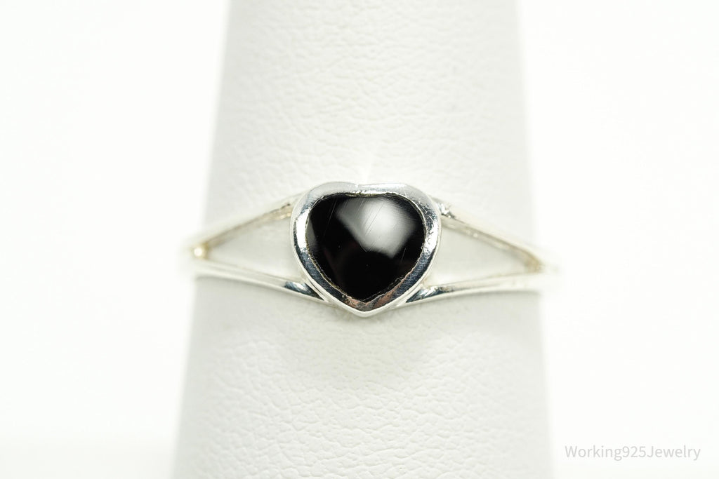 Vintage Black Onyx Inlay Heart Sterling Silver Ring - Size 8