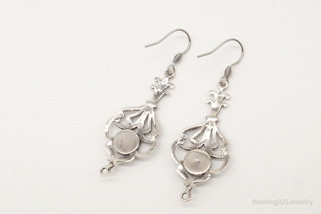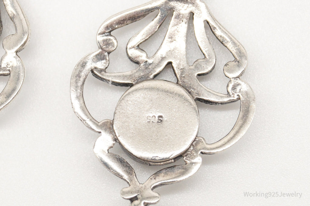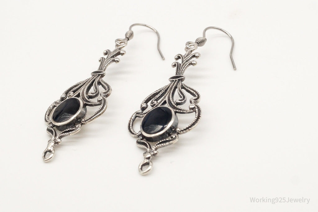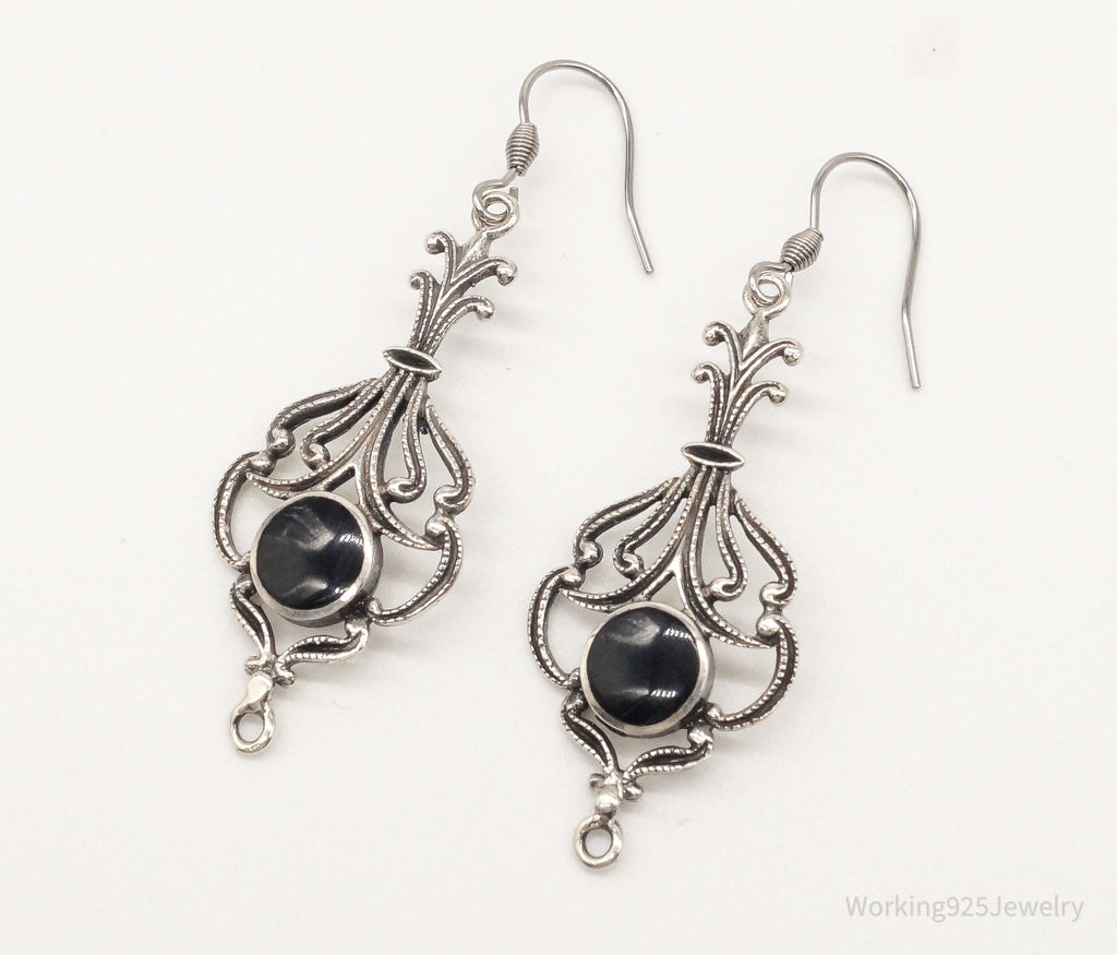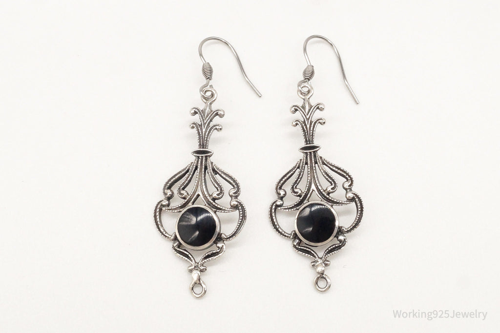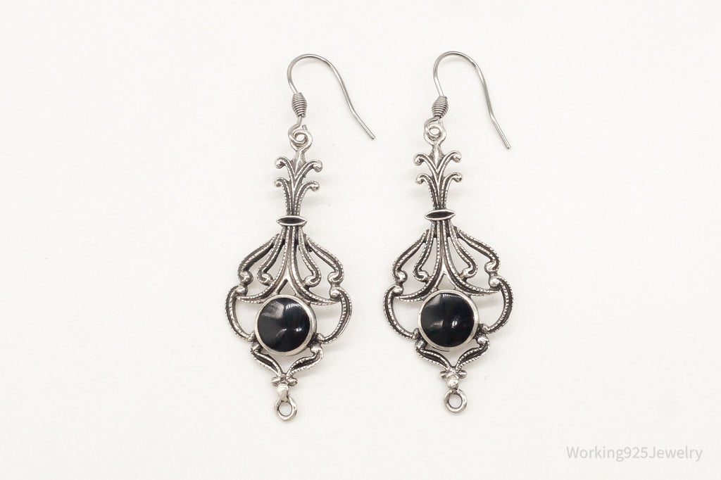 Vintage Black Onyx Openwork Sterling Silver Earrings