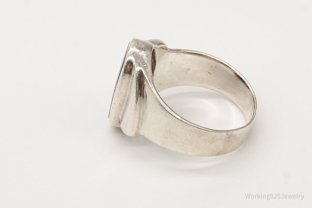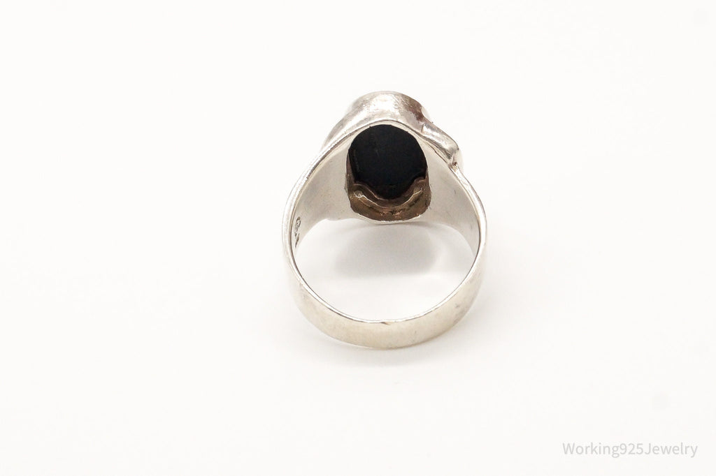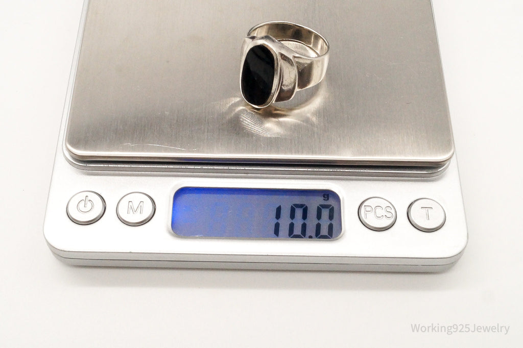 Vintage Black Onyx Sterling Silver Ring - Size 10.75