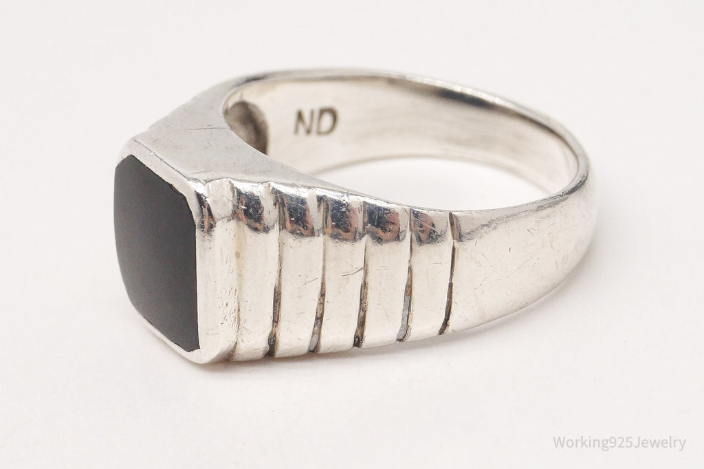 Vintage Black Onyx Sterling Silver Ring - Size 9