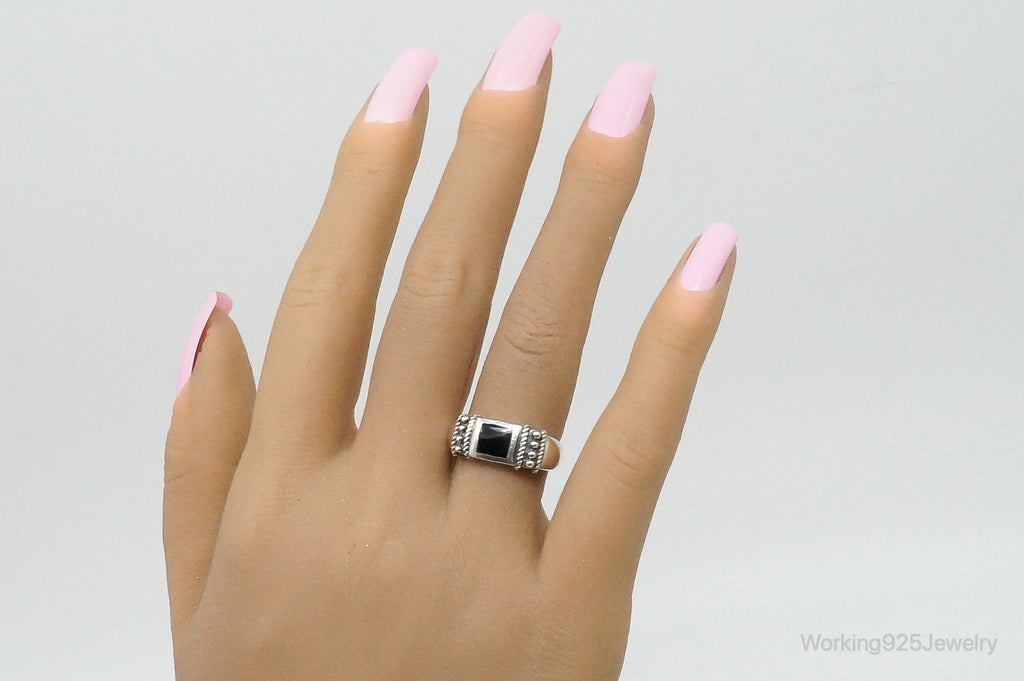 Vintage Black Onyx Sterling Silver Ring Size 5.75