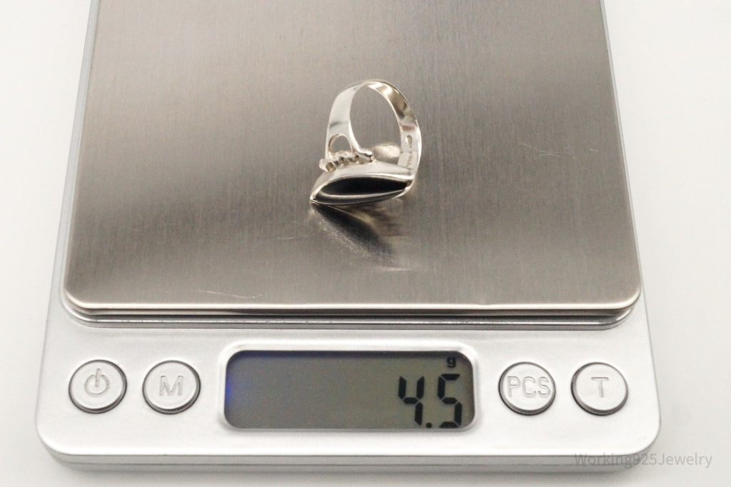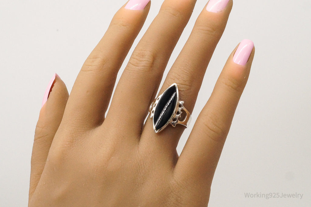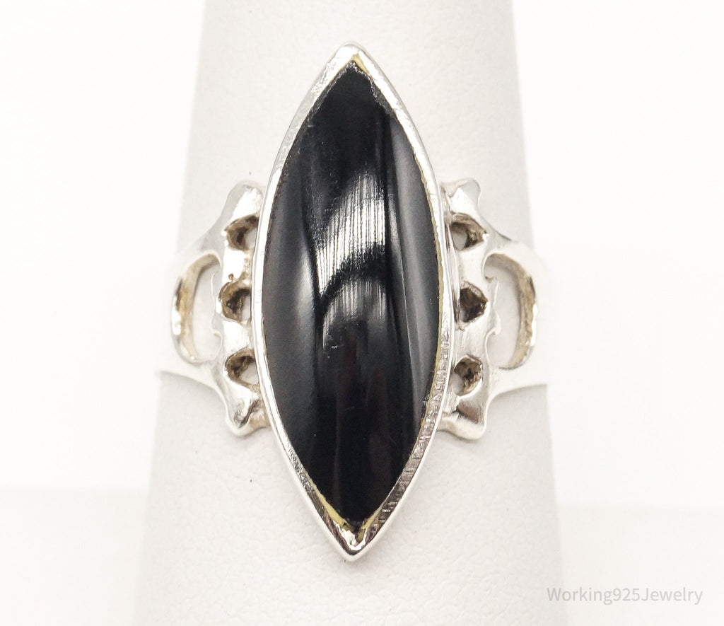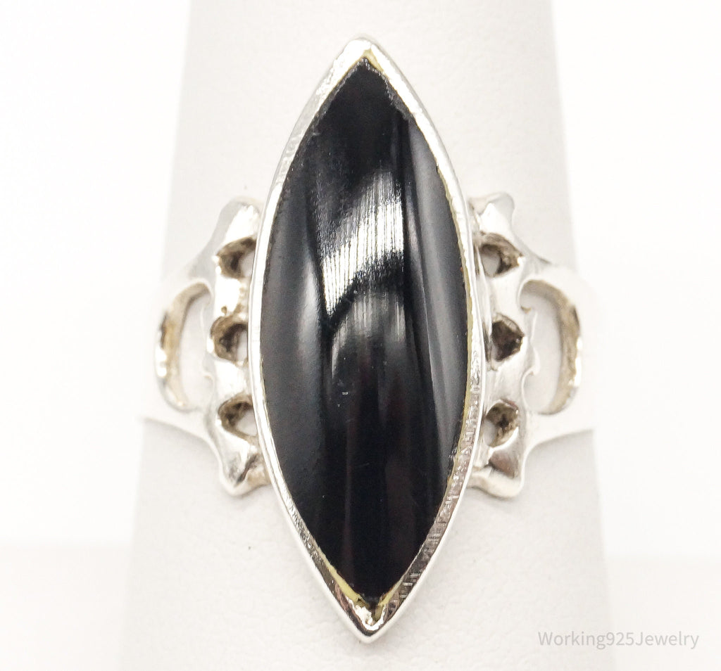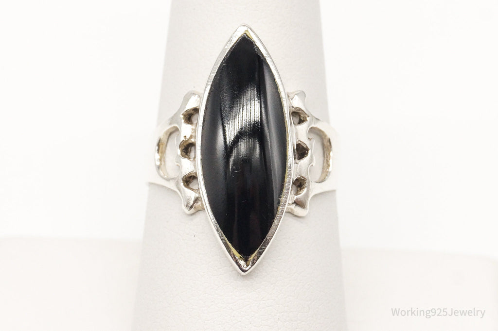 Vintage Black Onyx Sterling Silver Ring - Size 7.75