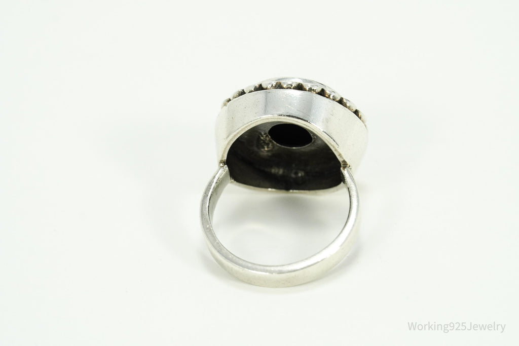 Vintage Black Onyx Sterling Silver Ring - Size 8.25