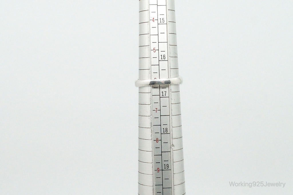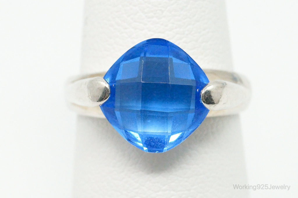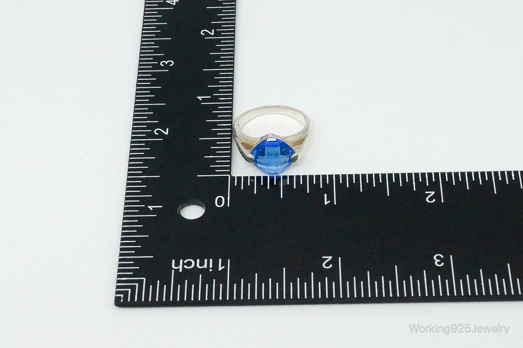 Vintage Blue Art Glass Modernist Sterling Silver Ring - Size 6
