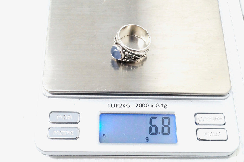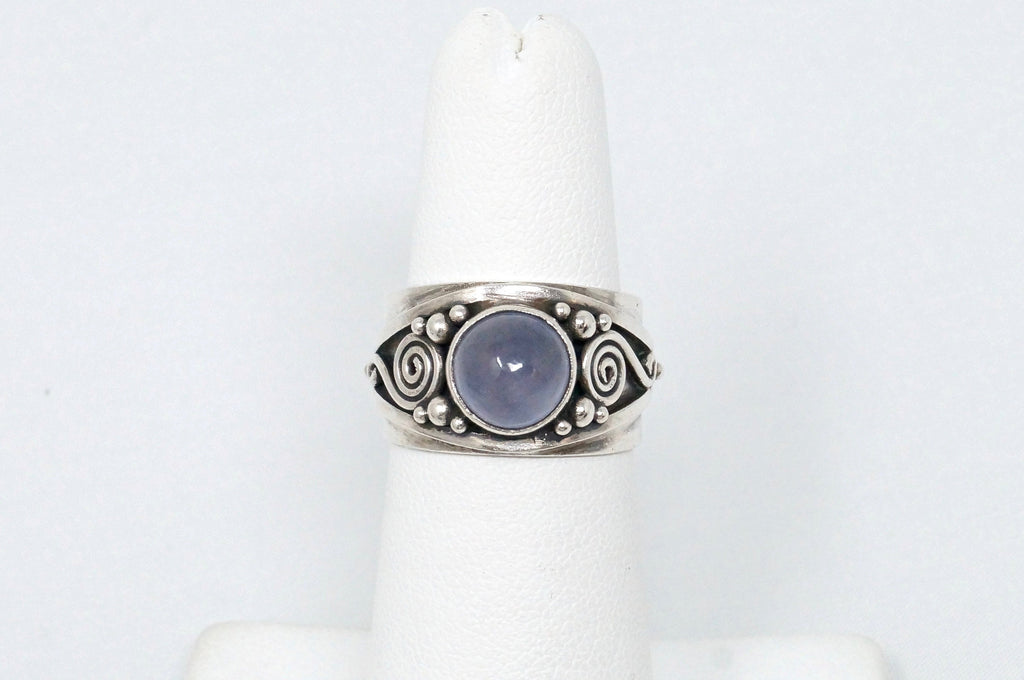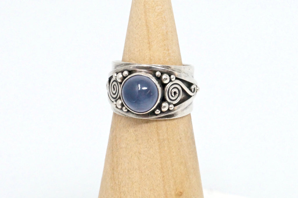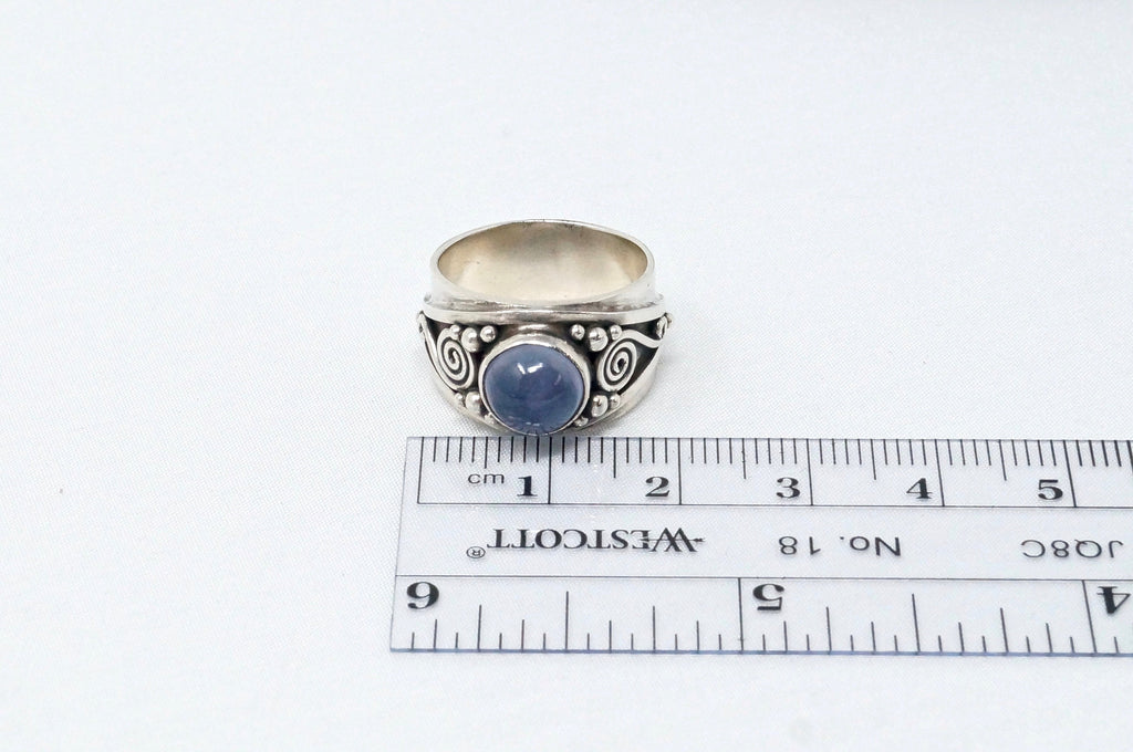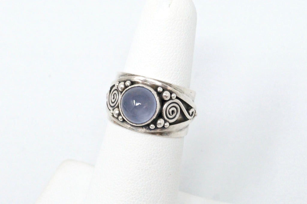 Vintage Blue Chalcedony Scroll Sterling Silver Band Ring - Size 5.5