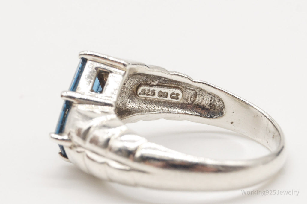 Vintage Blue Diamonique Sterling Silver Ring Size 6.75